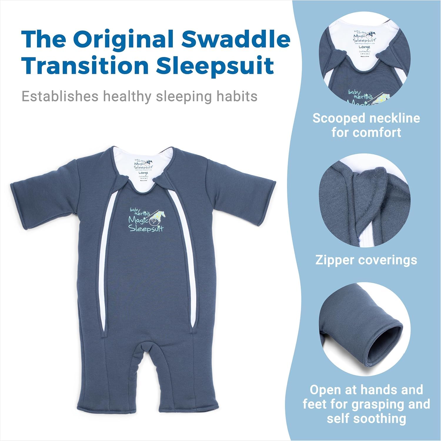 Magic Sleepsuit Baby Merlin's Cotton Baby Swaddle Transition Product - Soft and Cozy Design, Double Zipper for Easy Diaper Changes, Promotes Safe Sleep, 3-6 Months - Navy Blue - Small 12-18lbs