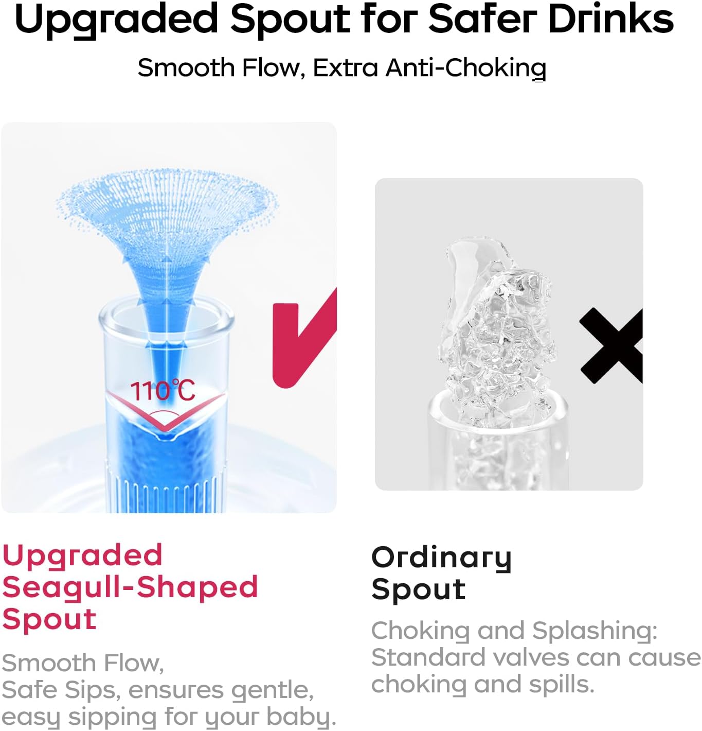 - 【Safety Using】Toddler cups with weighted sippy straw cup design makes the water where the end of the straw will go, allowing baby to drink water in any comfortable position. V-type learning design trains baby's oral movements while effectively preventing coughing and choking.