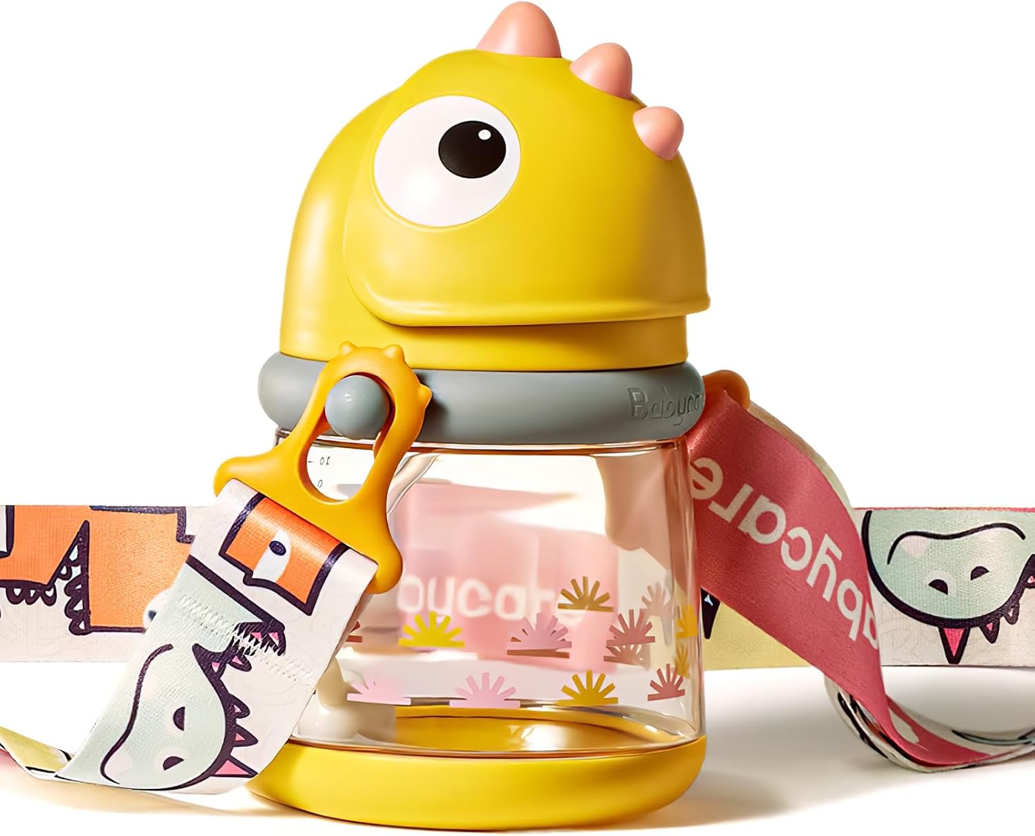 bc babycare Straw Sippy Cups for Toddler, No Spill Sippy Cups for Baby 1+ Year Old, Transition Weighted Sippy Cup with Straw and Strap, 10oz/300ml, Yellow