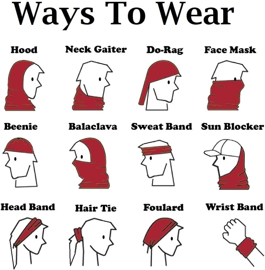 - VERSITILE:Tubular bandannas can be used as headband, wristband, mask, scarf, hairband, do-rag, bandana, skull cap, balaclava, neck gaiter, scrunchy, hair tamer, and more!
