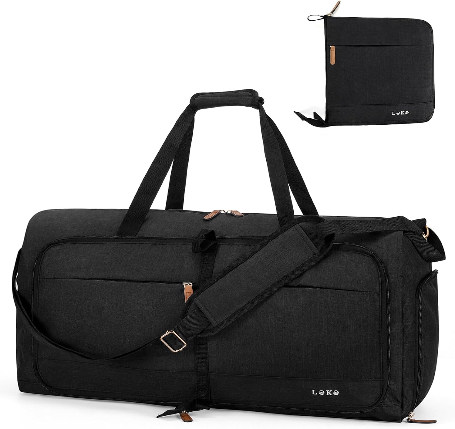 Lekesky Foldable Travel Duffle Bag for Women, 60L Large Duffel Bag with Separate Shoes Compartments & Straps, Carry On Weekend Bag for Women, Hospital, Overnight (Black)