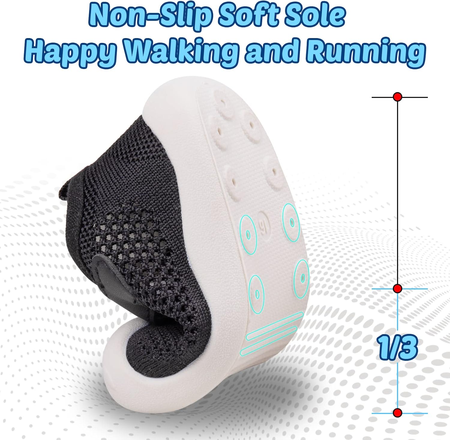 - Breathable: The soft, upgraded knit upper of these toddler sneakers ensures superior breathability, quickly wicking away sweat to keep little feet dry and comfortable—perfect for summer walks, runs, or active play.