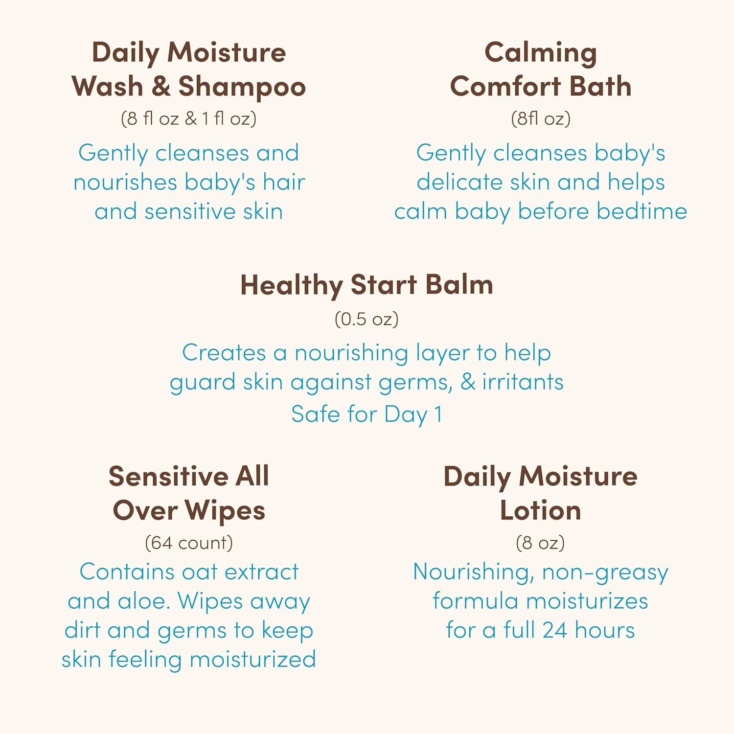 Aveeno Baby Welcome Little One Gift Set, Baby Skincare Set with Nourishing Baby Body Wash & Shampoo, Calming Bath Wash, All Over Baby Wipes, Daily Moisturizing Lotion, & Baby Balm, 5 Items