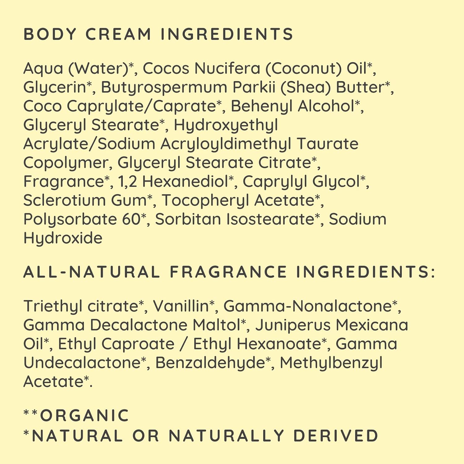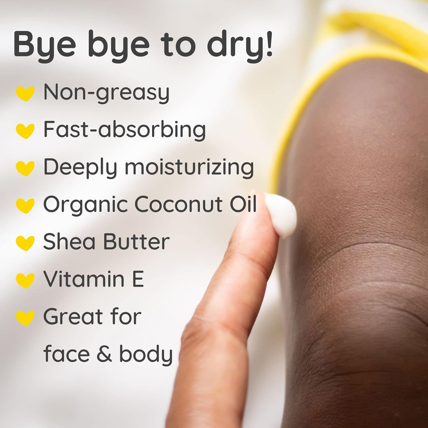 - DEEP MOISTURIZING: This non-greasy, fast-absorbing face and body cream is made with high levels of certified organic cold-pressed Coconut Oil, Shea Butter and Vitamin E. It melts onto skin and softens immediately.