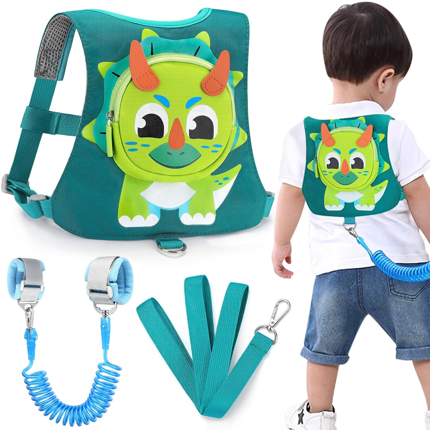 Toddler Harness Leash with Anti Lost Wrist Link, Accmor Kids Dinosaur Harnesses Leashes, Cute Triceratops Kids Walking Wristband Assistant Strap Belt for Parent Baby Boys Outdoor Activity