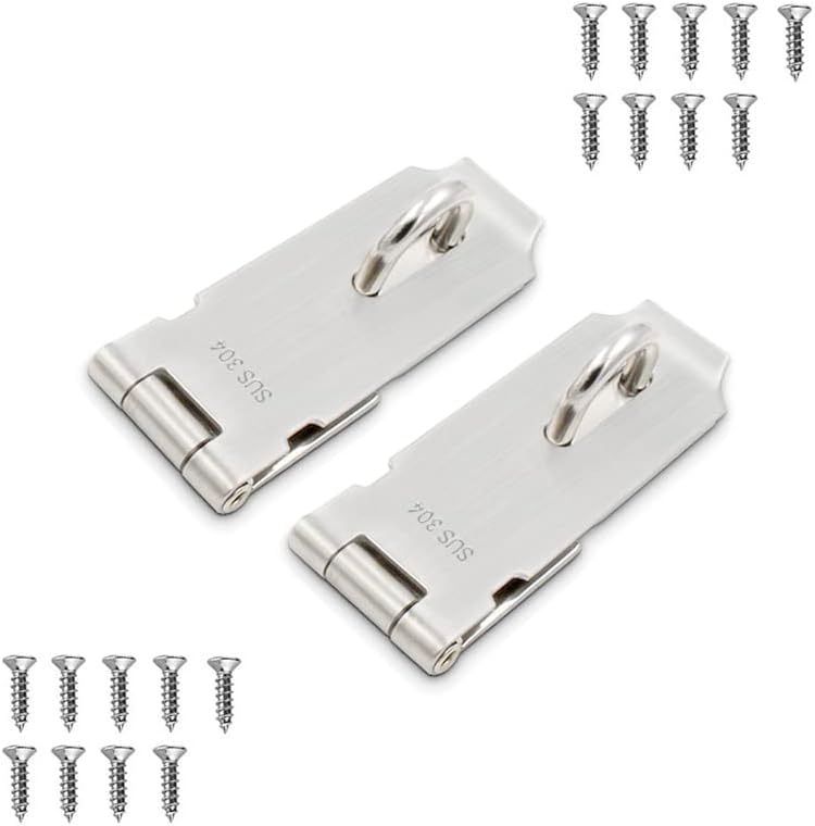 Door Hasp Padlock Latch, 4 Inch Stainless Steel Safety Clasp Hasp Lock Latch, Extra Thick Door Gate Lock Hasp with Screws, Brushed Finish 2 Pack
