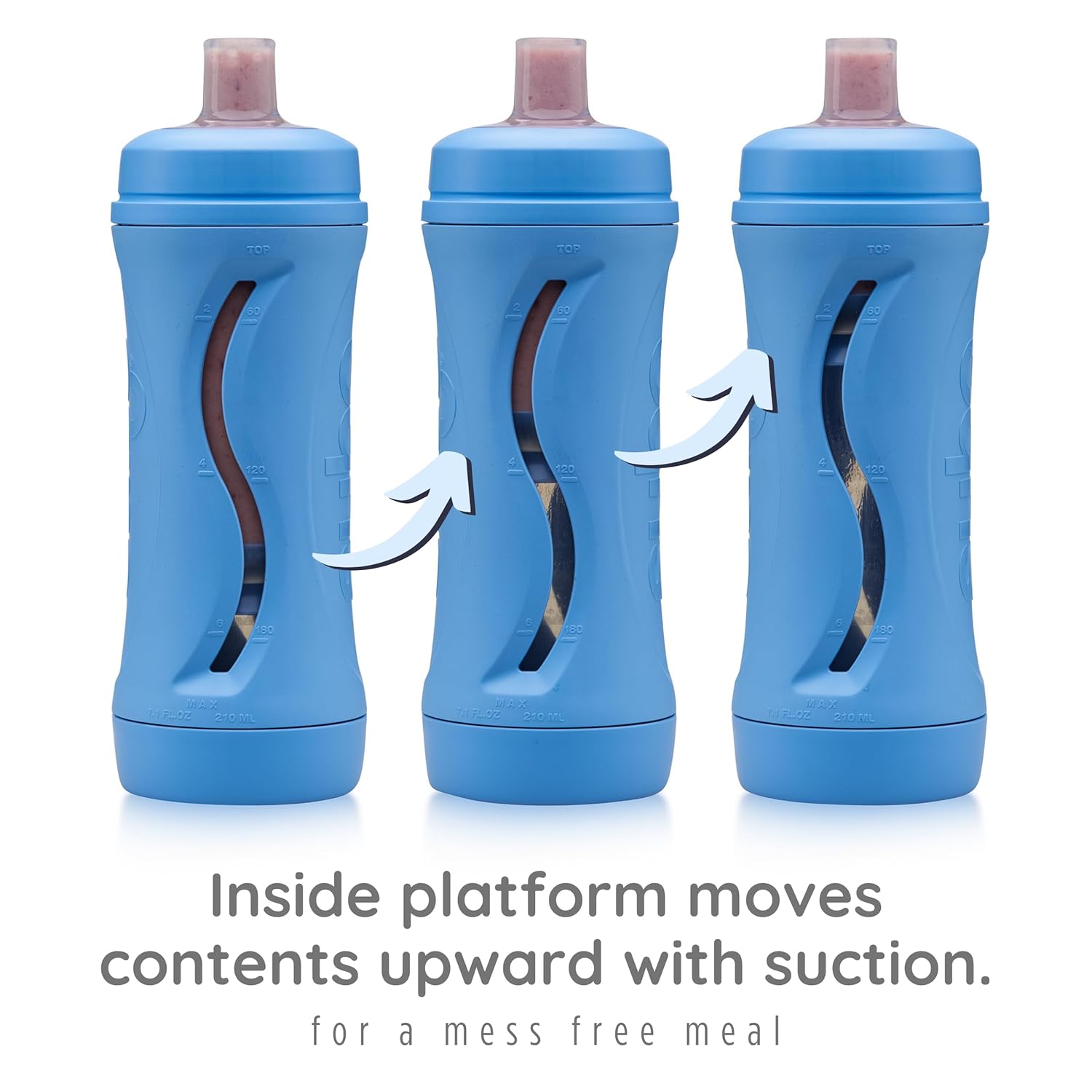 Subo Baby Food Bottle Starter Set | No Mess Baby Toddler Self Feeder | Squeeze Free Design for Purees, Smoothies, Yogurt, Oatmeal, or Thickened Liquids | Reusable Silicone Washable Cup (Blue)