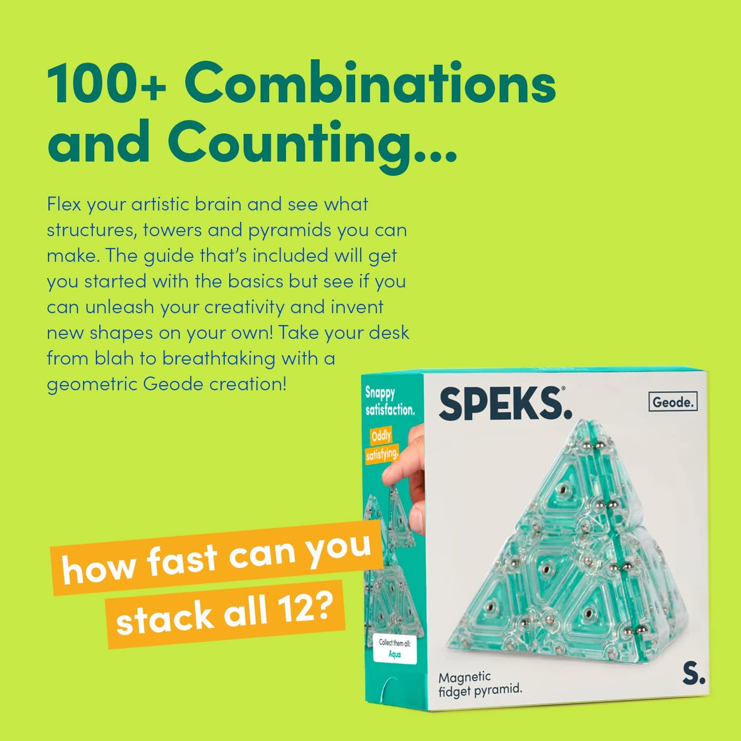 Speks Geode Pyramid 12-Piece Building Set - Aqua - Fun Desk Toy for Adults