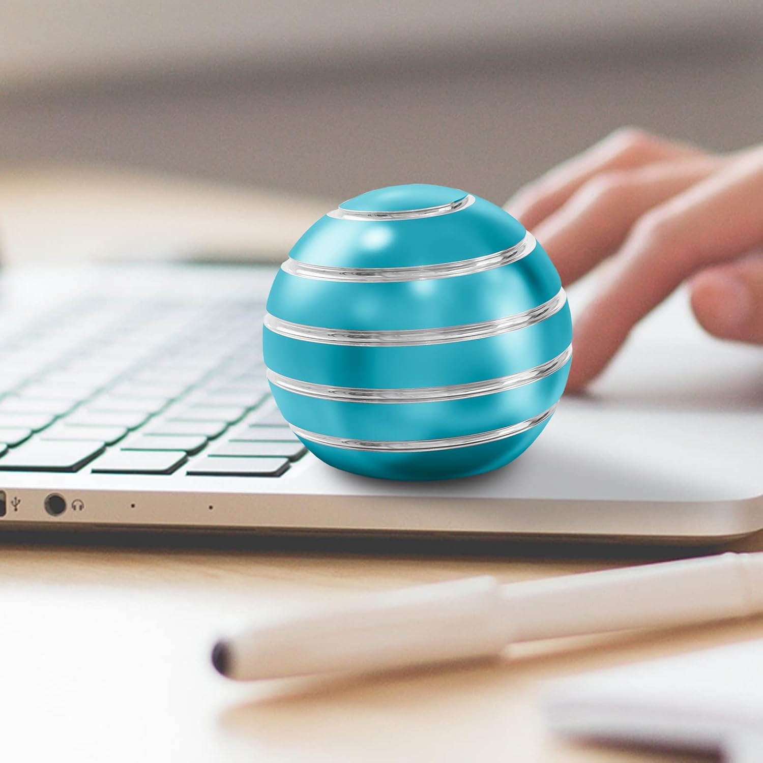 - PACKAGE CONTAINS - 1pc light blue kinetic spinning desk toy, size: 1.77inch/45mm, weight: 3.88oz./110g, spinning time:180-300 seconds