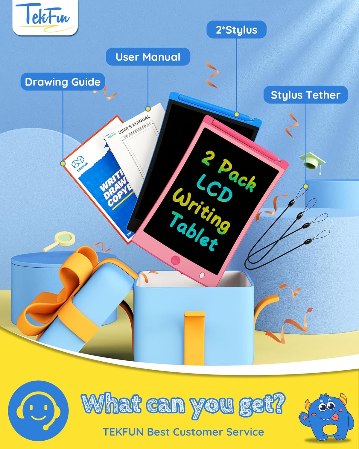 - Perfect Gift: TEKFUN's writing tablet is the perfect toy gift for kids of all ages. Whether it's for a birthday, Christmas, Easter, Valentine's Day, or back-to-school supplies, this multi-use toy is suitable for 3-7-year-old boys and girls, as well as teens and adults.