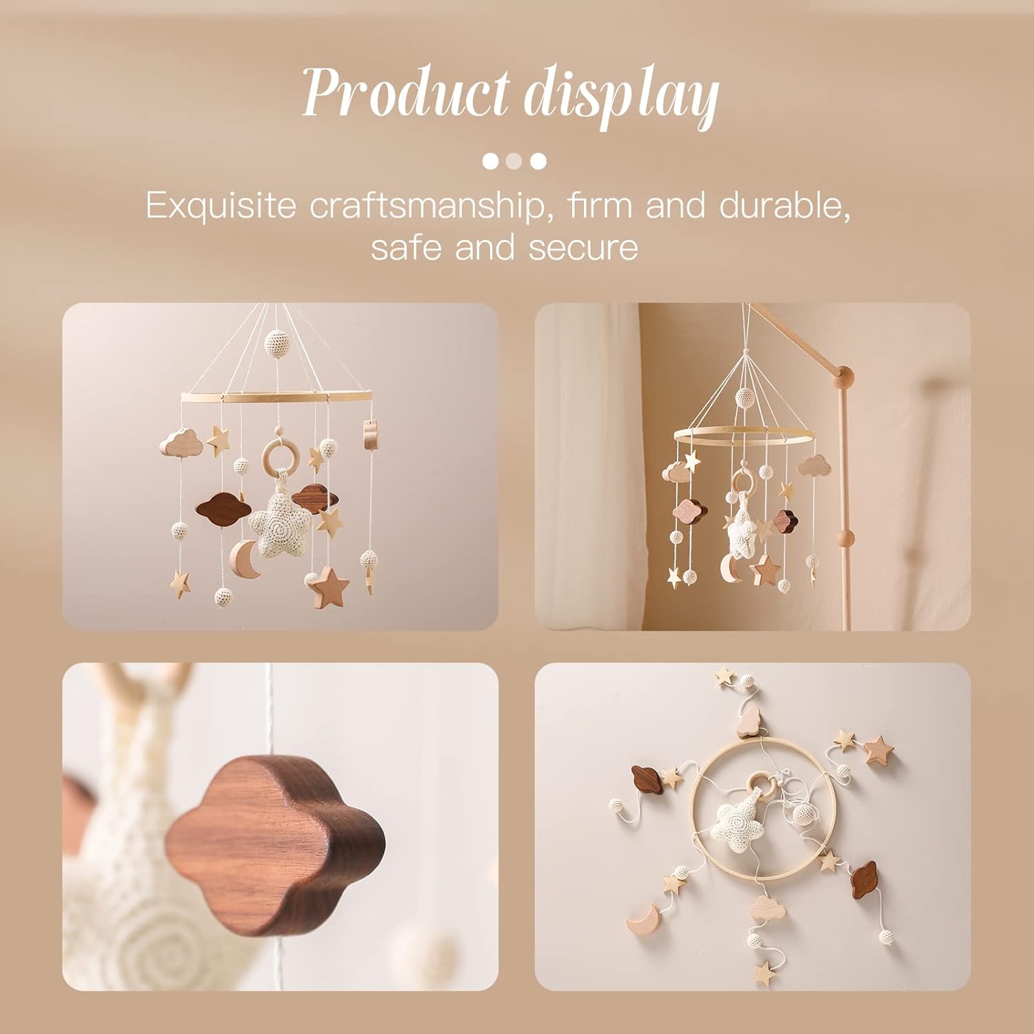 - ✨GENDER NEUTRAL BABY MOBILE - Beautiful baby mobile is in soft and natural colors - white and wood color. Neutral soothing color tones make this crib mobile be suitable for both baby boys and girls. Perfectly match any nursery decor or boho decor for any room of the house.