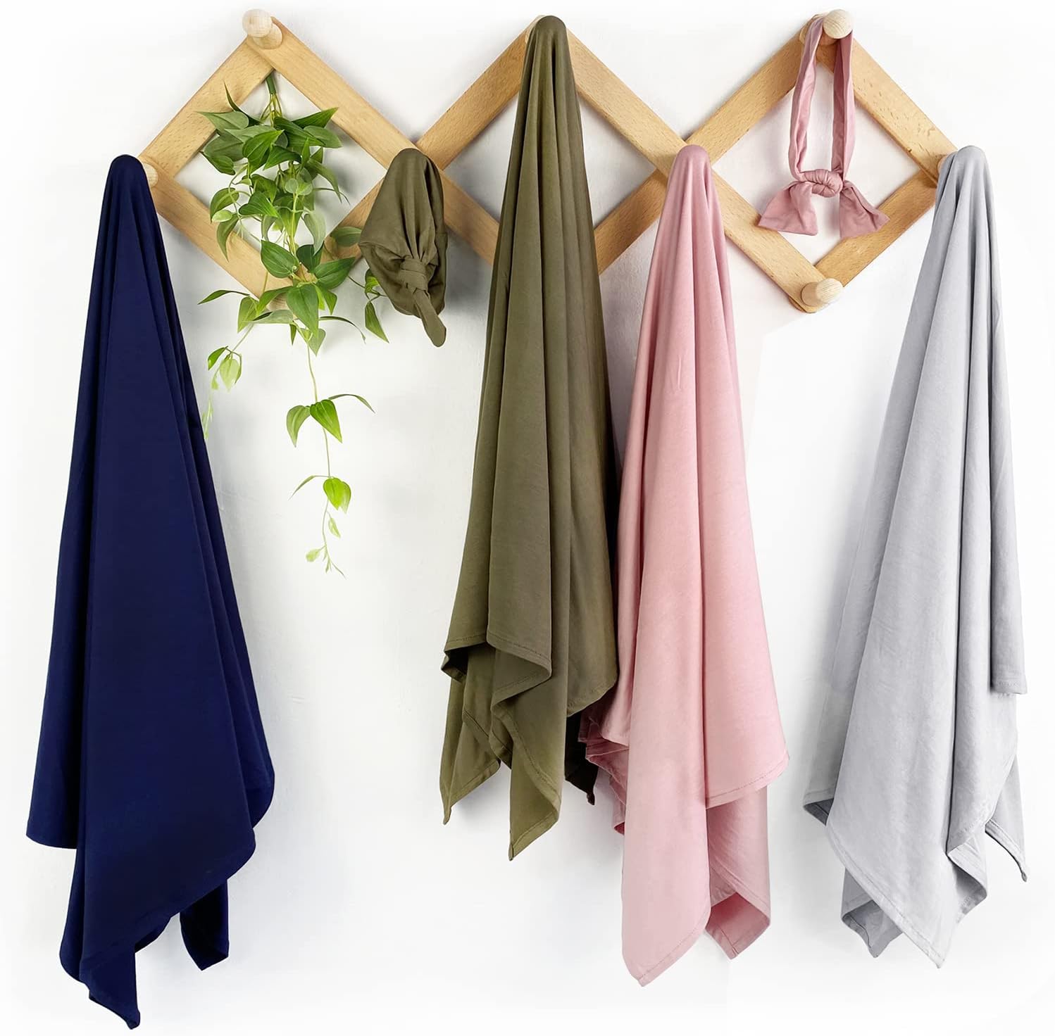- STYLISH SET:Owlowla newborn swaddle set includes 1 45"x45"swaddle blanket,1 beanie hat or 1 knotted headband and 1 birth announcement card,the blush swaddle blanket set is matching with 1 knotted headband,many of colors are suitable not only for girls but also for boys