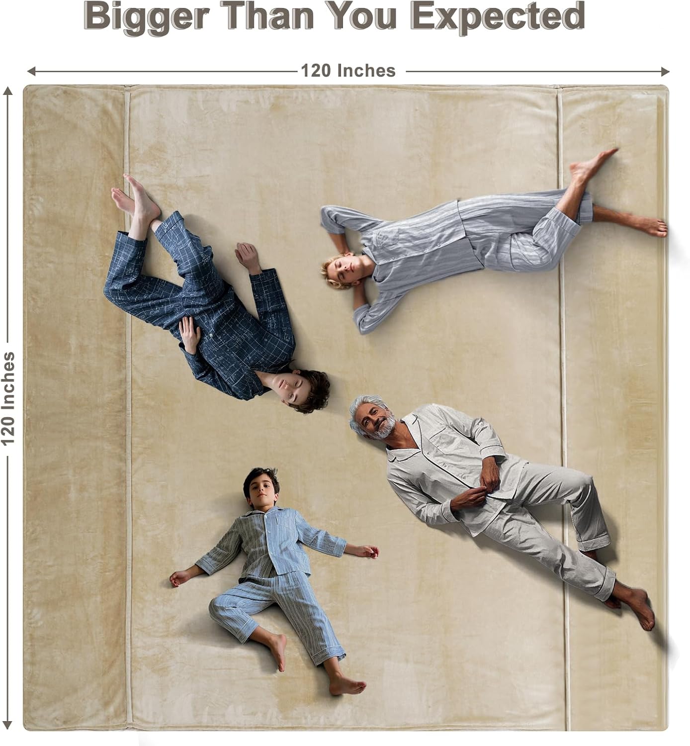 - Extra Large Size Blanket: Measured by 120"x 120", It's Bigger than you can imagine, Nearly double the size of a standard king-size blanket, which means it can surround you and your families with just one blanket.