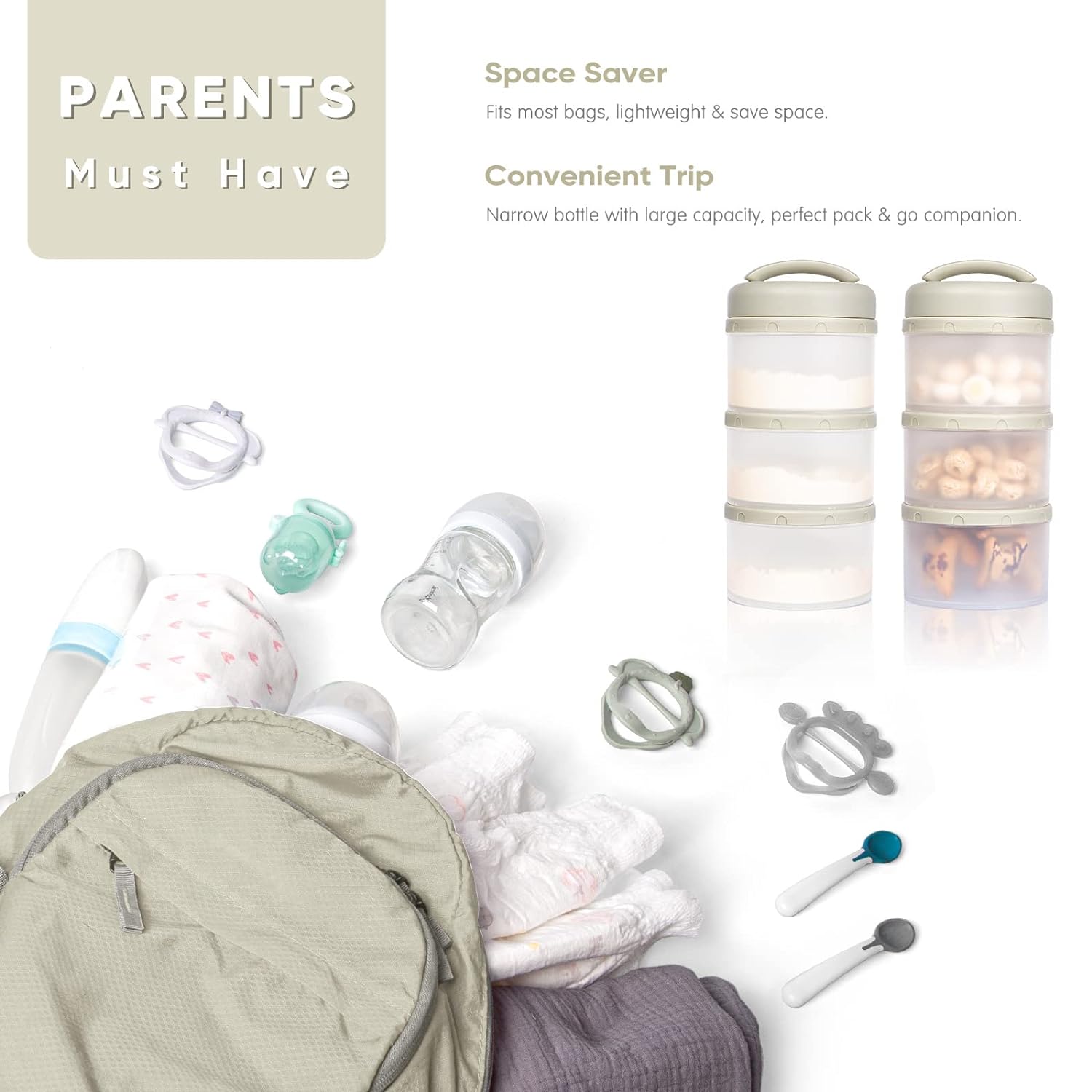 Termichy Stackable Formula Dispenser Portable Milk Powder Container, 2 Pack, Warm Grey