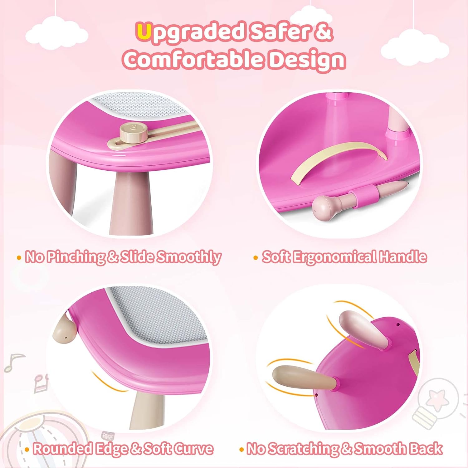 - Safety: Our magnetic drawing board is crafted with top-notch ABS material, ensuring both durability and quality. Safety is our utmost priority, which is why this board is non-toxic, BPA-free, and free from any small parts that could pose a choking hazard. We've taken extra precautions to make it child-friendly, with a Full-Sealed back and rounded corners to prevent any accidental scratches.