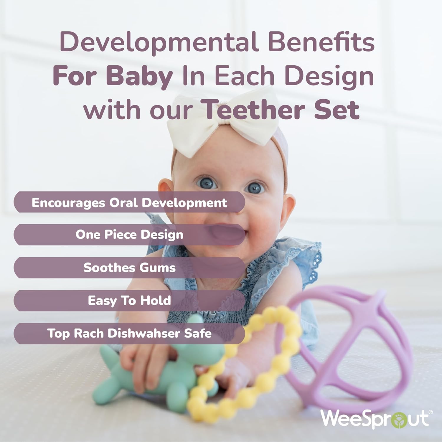 - BPA-FREE, FOOD GRADE SILICONE – WeeSprout baby teething relief toys are made with a high-density, super flexible silicone that can stand up to biting and chewing. They are also top rack dishwasher safe making them easy to clean and sanitize.