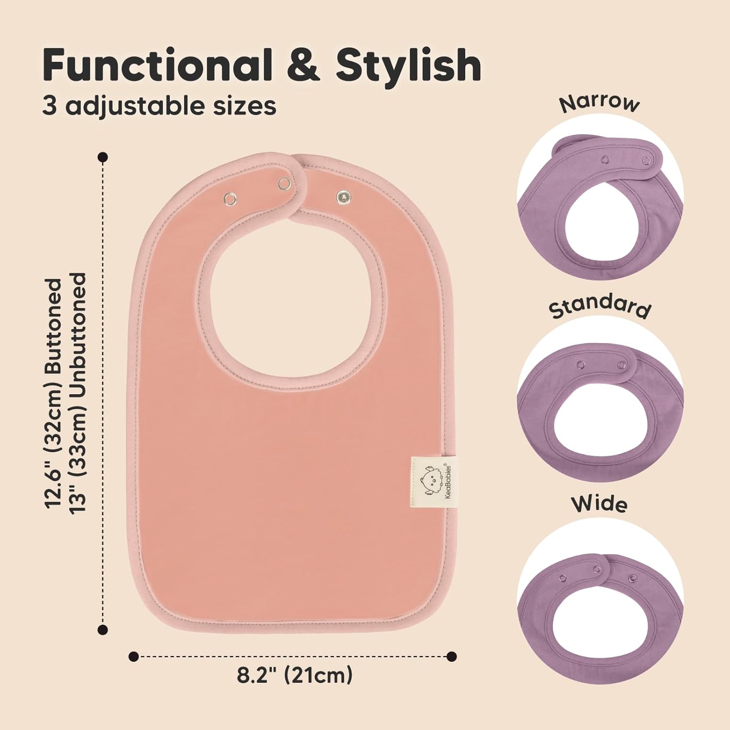 - 3 Adjustable Sizes With Soft Seams - With 2 sets of nickel-free snaps, you can adjust the girl and boy bibs according to your baby’s neckline. The soft-wrapped seams provide extra comfort for your baby while having the baby cloth bibs on.