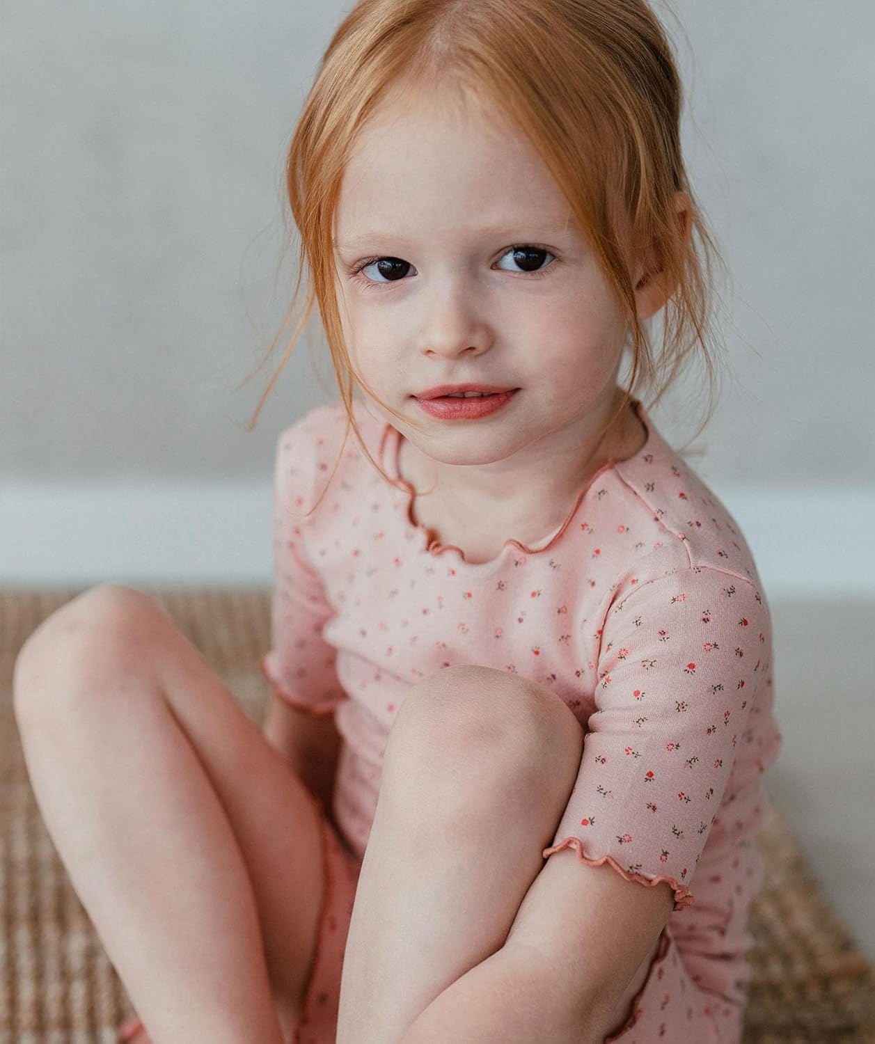 AVAUMA Baby Boy Girl Pajama Set 6M-7T Kids Cute Toddler Snug fit Flower Pattern Design Pjs Cotton Sleepwear Ruffled Shirring