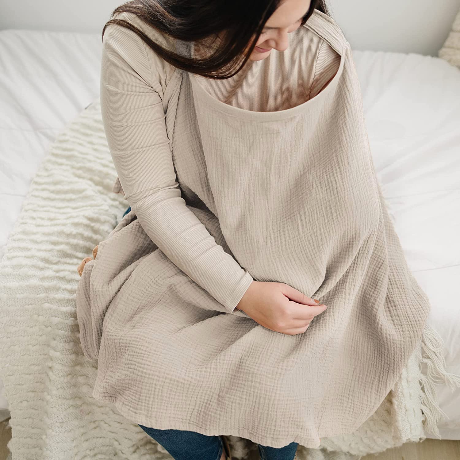 - Premium Fabric: Nursing cover for breastfeeding are made of 100% cotton (Muslin) for maximum breathable with skin-friendly soft touch and retain its color after washed for several times. It makes both mothers and babies feel comfortable and content during breastfeeding