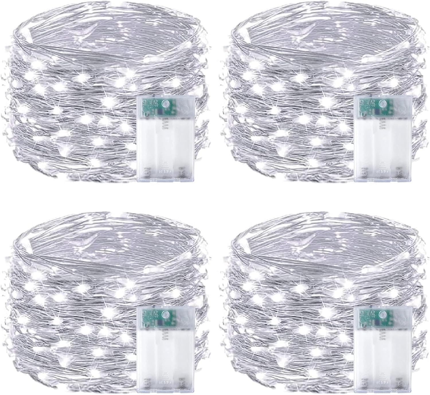 4-Pack Fairy Lights Battery Operated with Timer, Waterproof 16FT 50 LED String Lights Indoor Outdoor, Cuttable Starry Fairy Lights for Christmas Home Bedroom Wedding DIY Centerpiece Decor (Cool White)