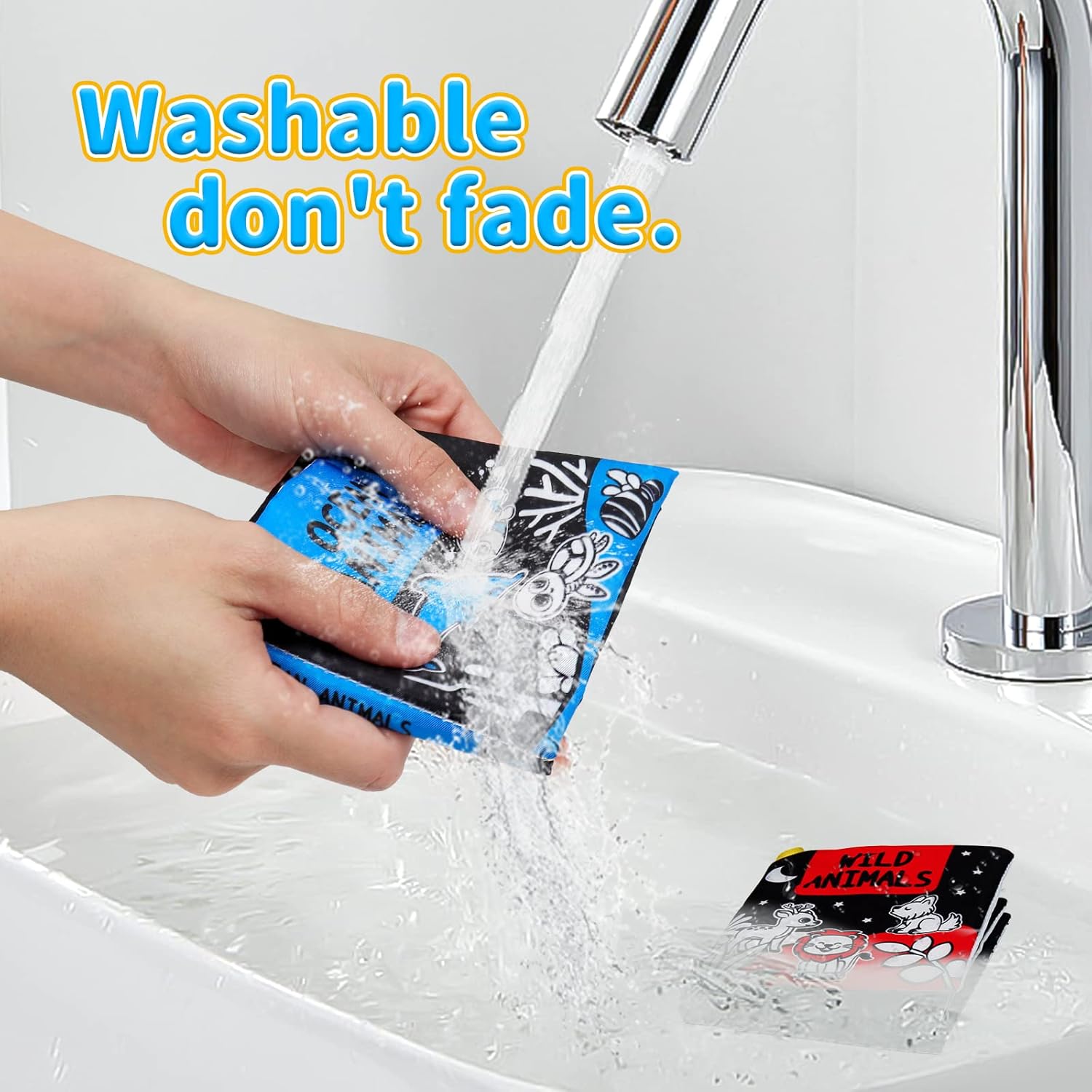 - CARRY IT EVERYWHERE: This soft baby book set is washable and no fading, a perfect bath toy for baby’s bath time. You can hang these soft books on car seat, stroller and crib. An ideal newborn developmental toy for 0 month above