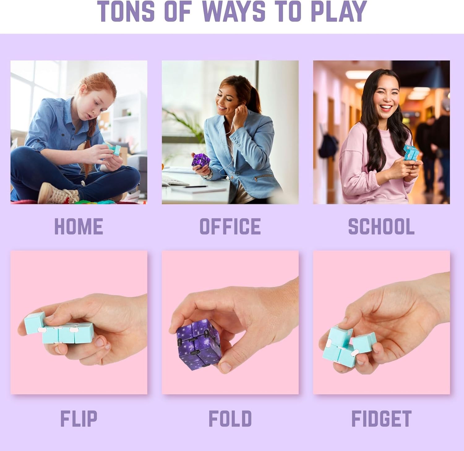 - Endless Fun & Calm - Our infinity cube fidget toy is designed to provide hours of entertainment and relaxation. Flip and fold them smoothly in your hand to relieve stress, anxiety, and nervous energy.