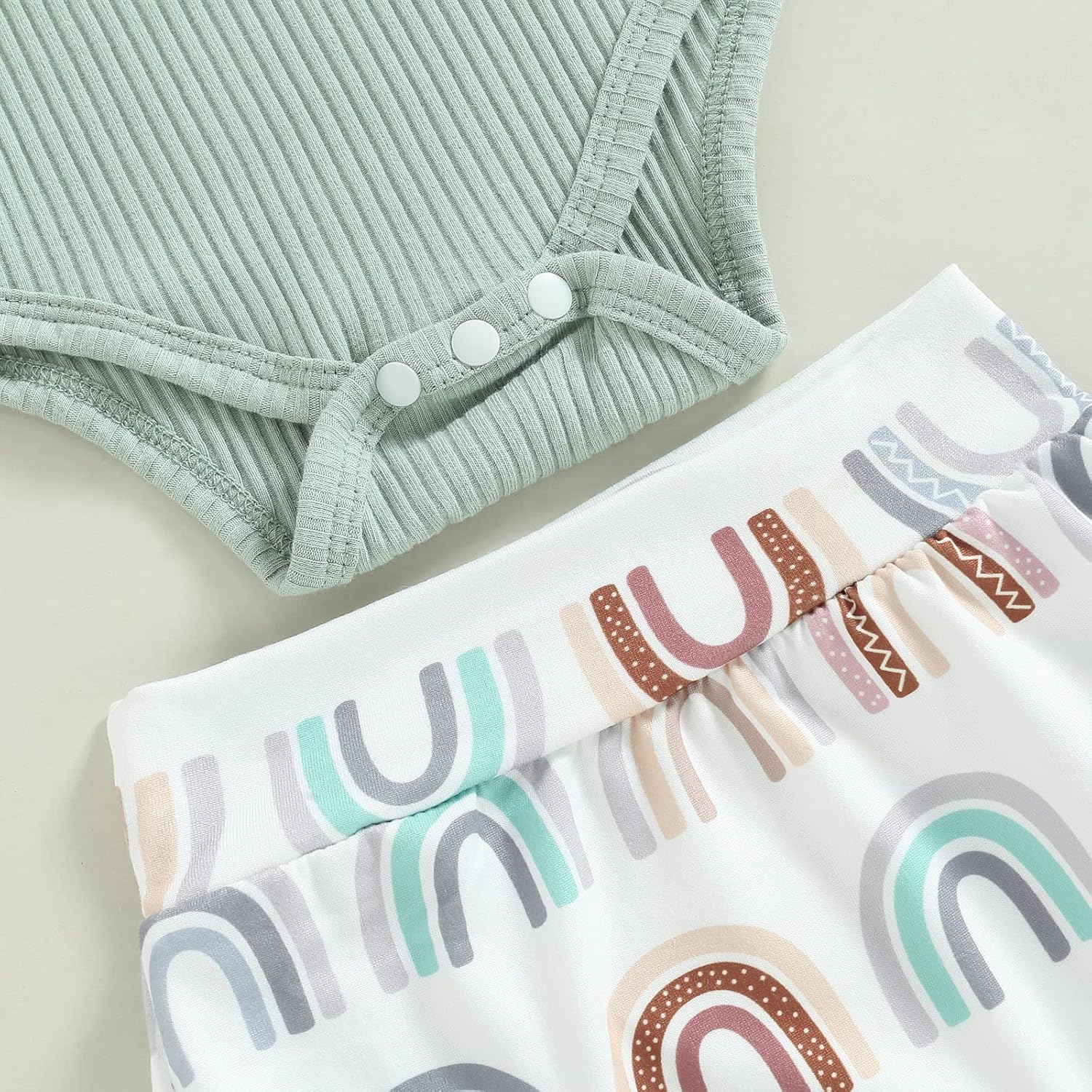 - Cute design: Summer baby girl sleeveless knitted camisole bodysuit, the fabric is soft and the color is refreshing, buttons at the bottom for easy diaper changes, the color of the ruffle shorts makes the overall look not monotonous