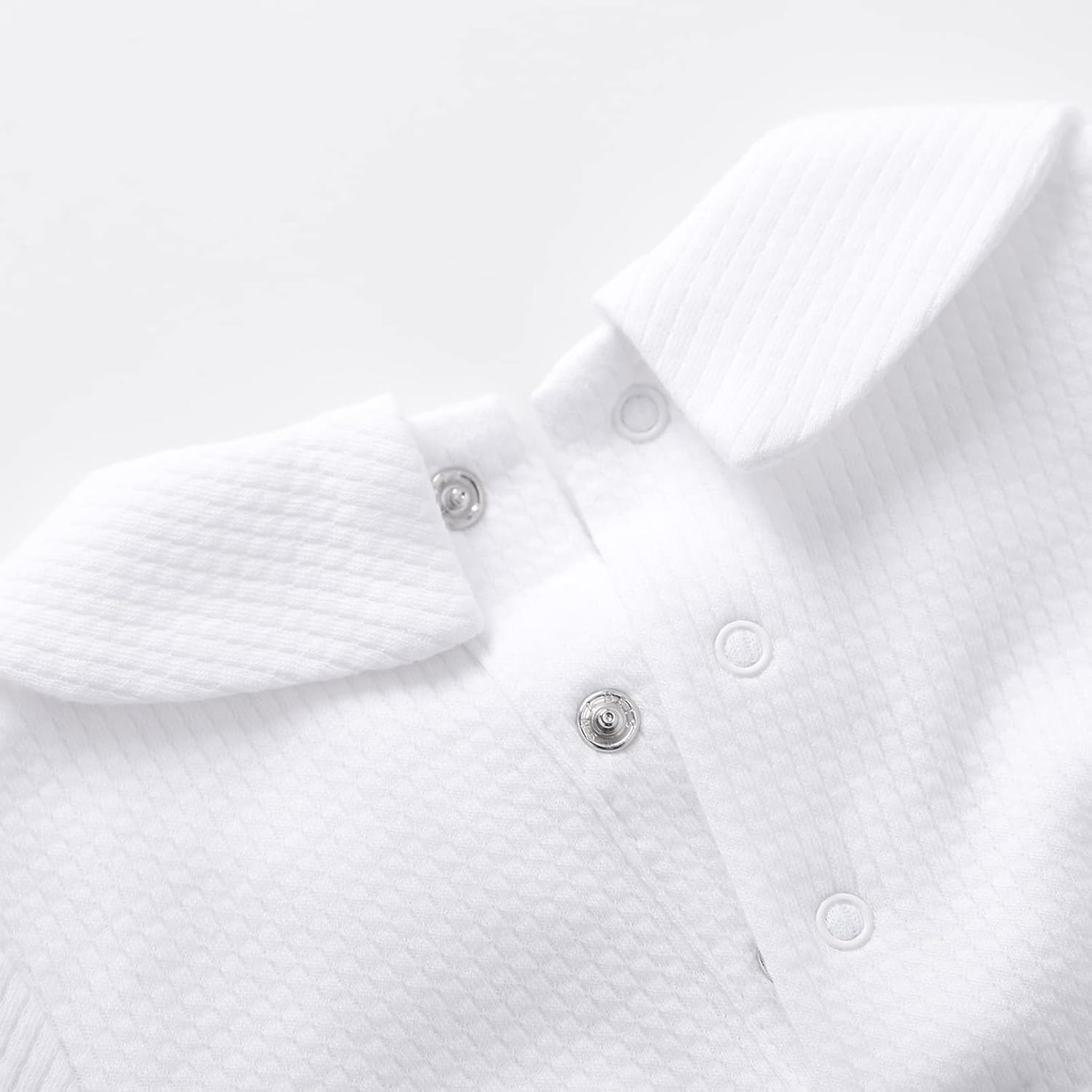 • EASY WEARING - Snaps at back make dressing easy, snaps at bottom for quick diaper changing