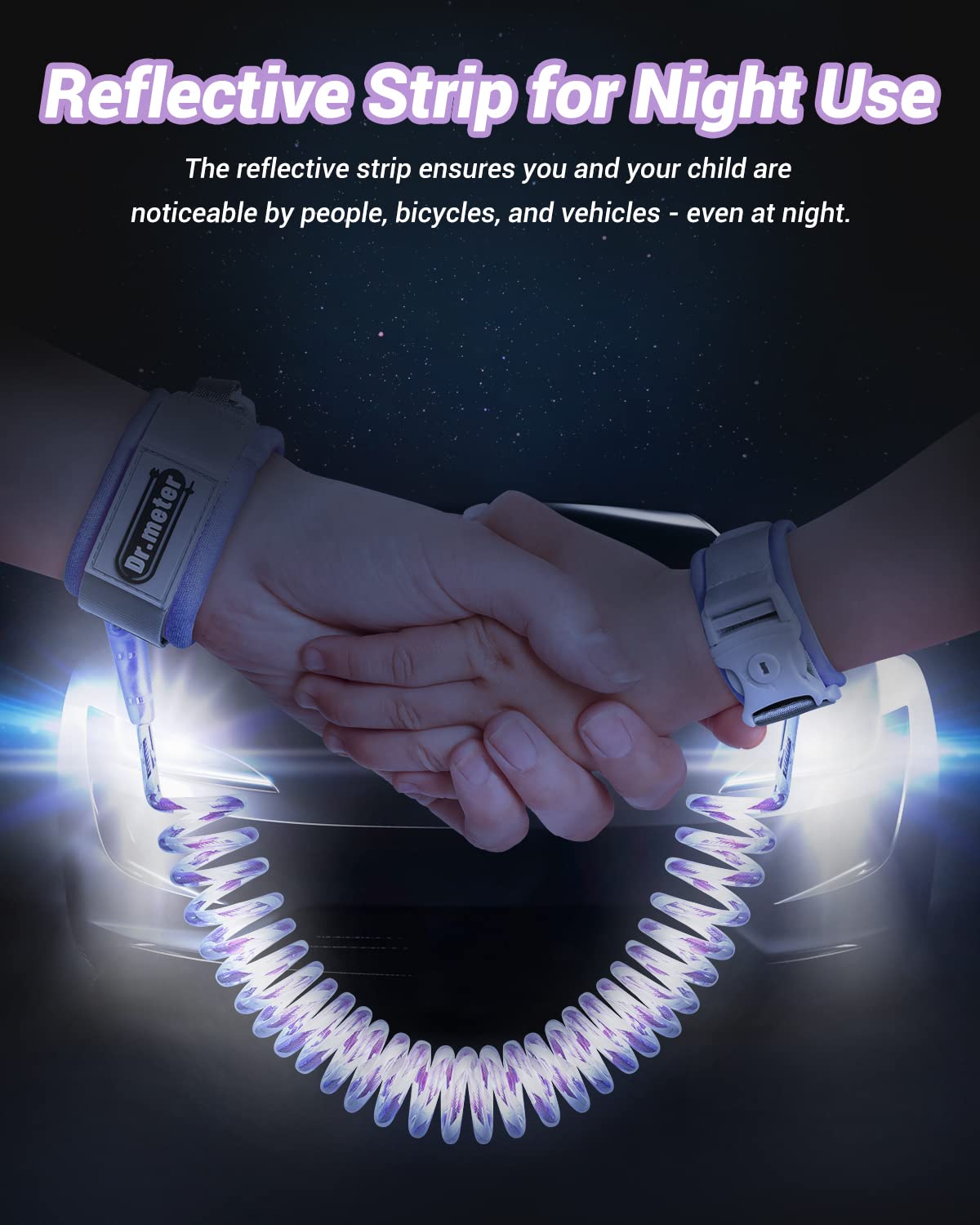 Dr.meter Kids Leash for Toddler, Reflective Anti Lost Wrist Link with Key & Lock, 8.2ft Safety Wristband Child Walking Harness for Supermarket Mall Airport Amusement Park Zoo Travel, Purple