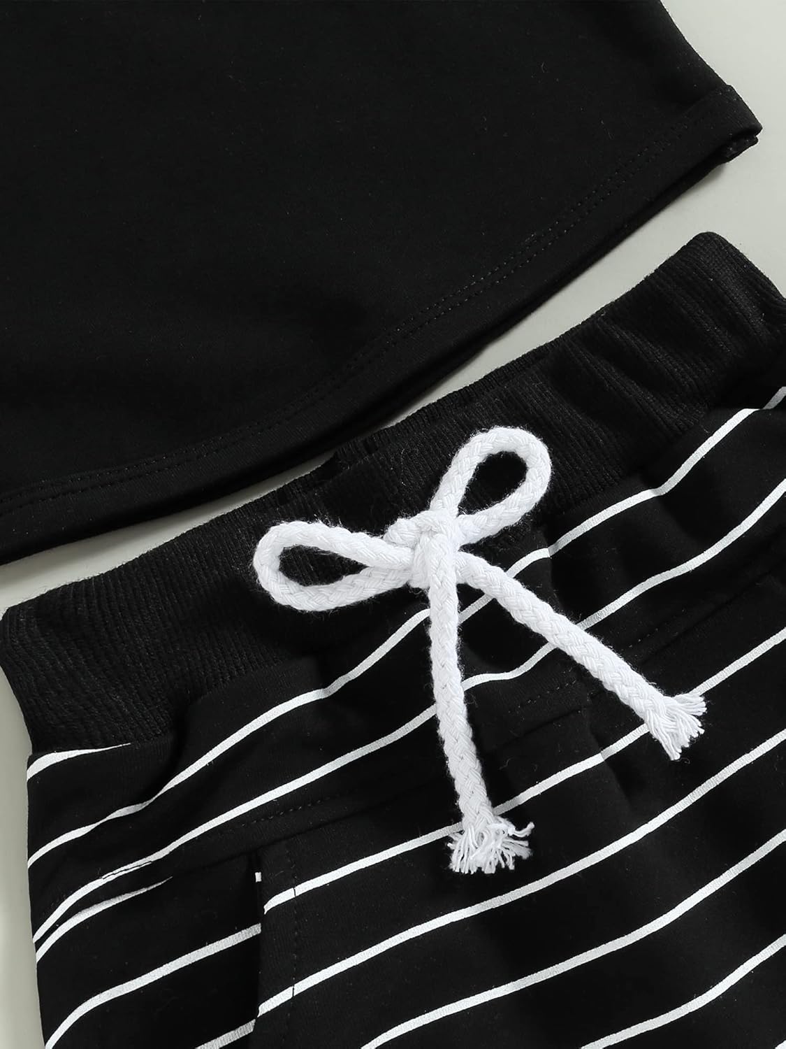 • Fashion Design: Cute baby boy summer shorts set, sleeveless contrasts color striped vest tank tops, pairing with elastic waistband soft short, cute toddler boys beach clothes outfits, toddler boy summer clothes