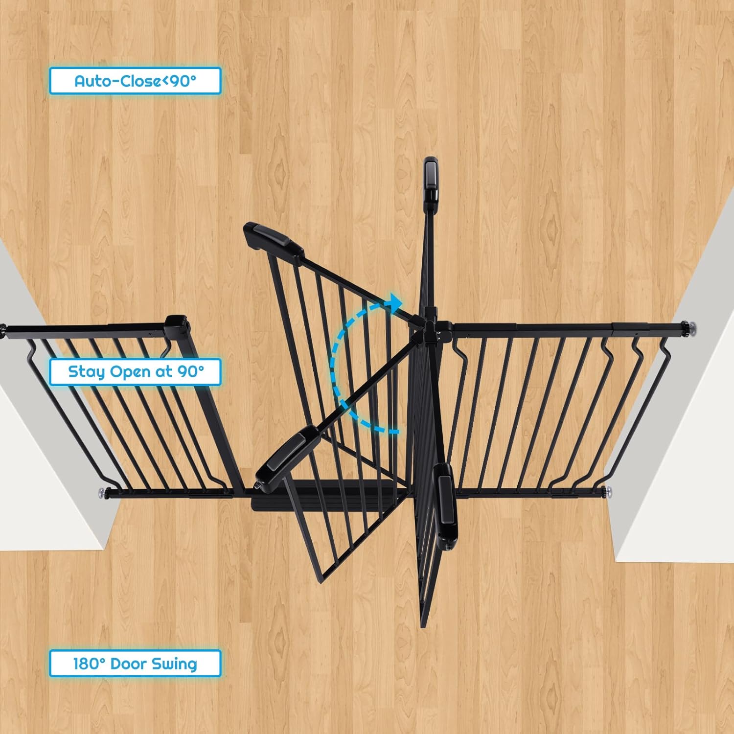 Extra Wide Baby Gate for Stairs Doorways with door, 30" Tall 66.5-75.8" Wide Easy Install Dog Gate indoor, Safety Metal Pressure Mounted Pet Gate with Walk-Thru Auto Close for the House, Black