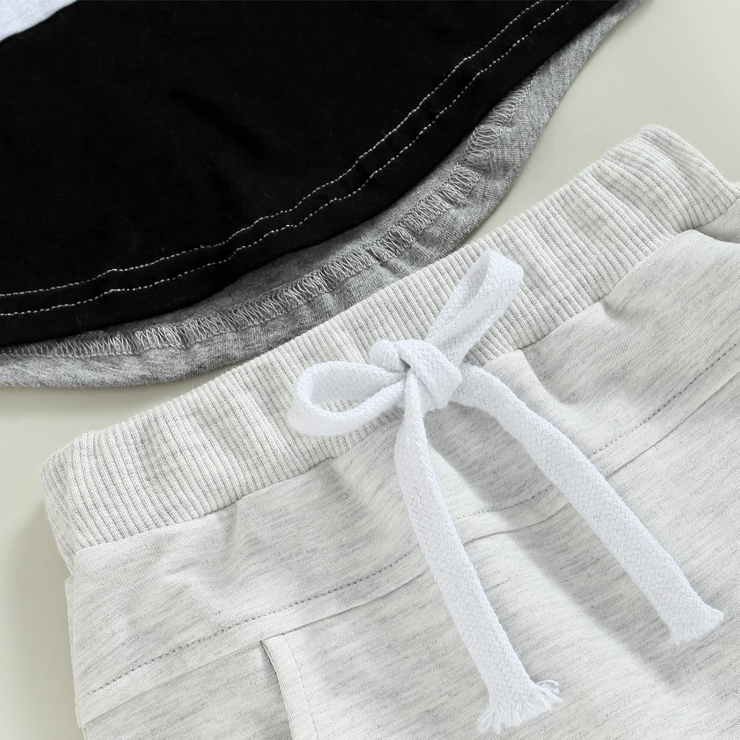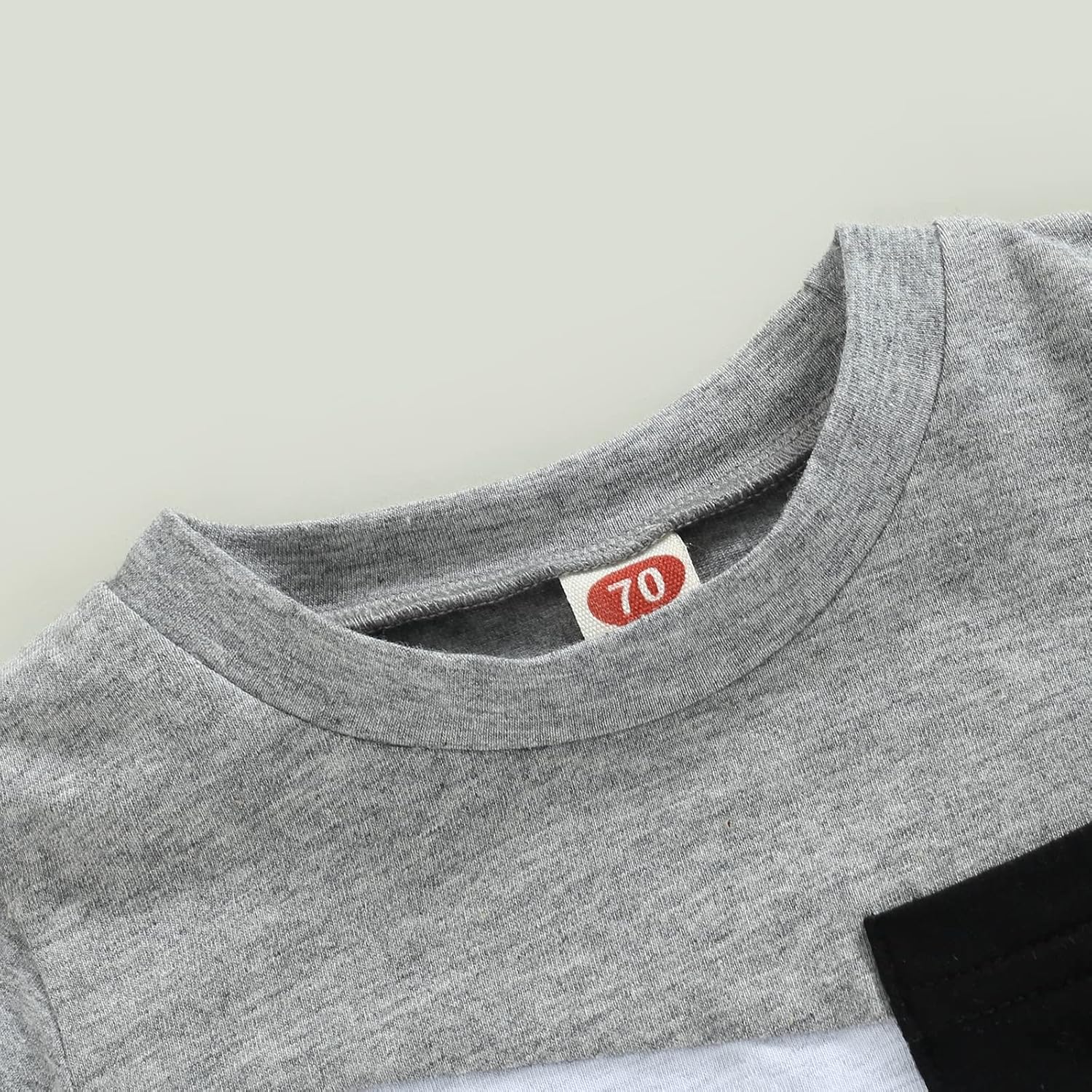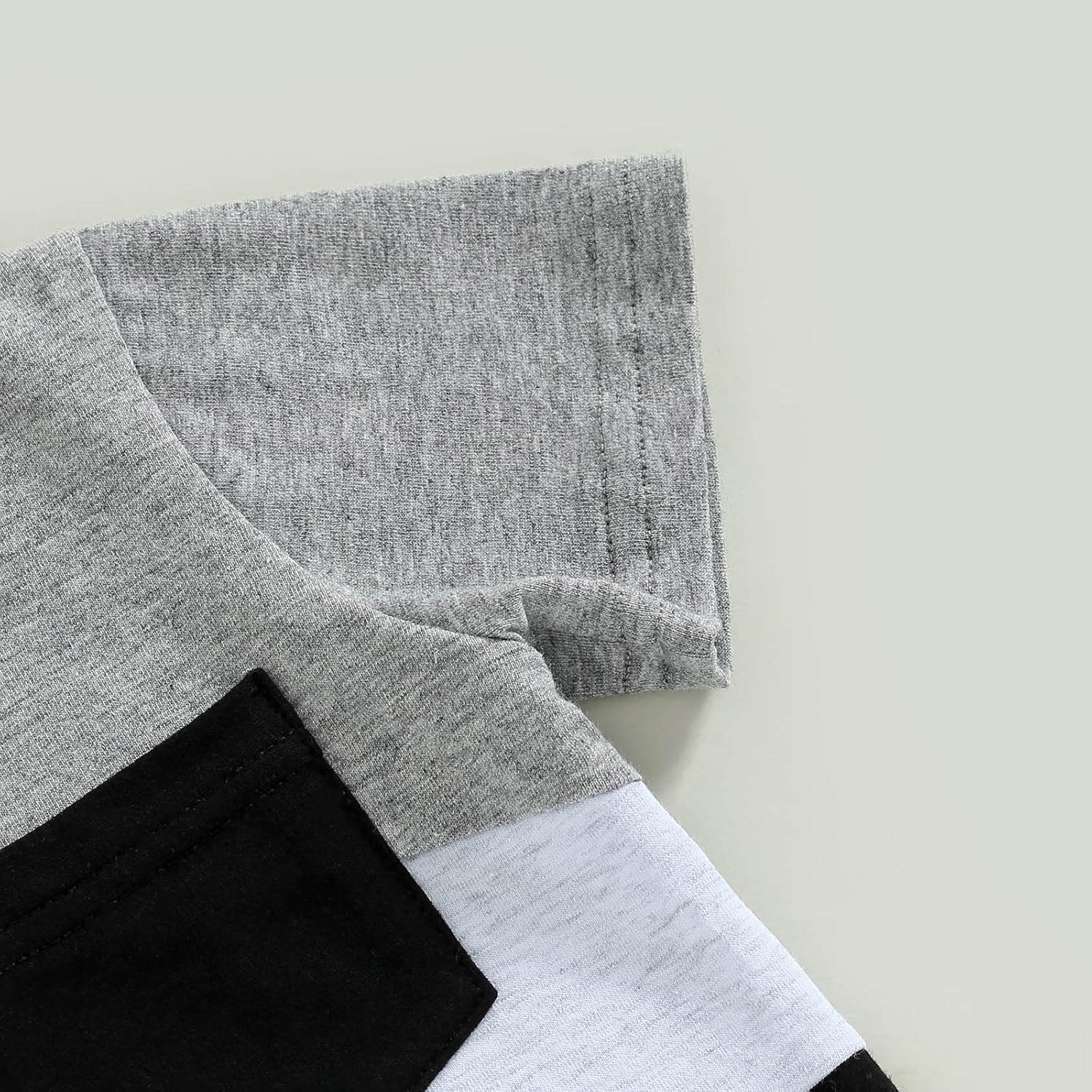 fhutpw Baby Toddler Boy Clothes Summer Outfits 6 12 18 24 Months Patchwork Short Sleeve T Shirt & Shorts Sets with Pockets