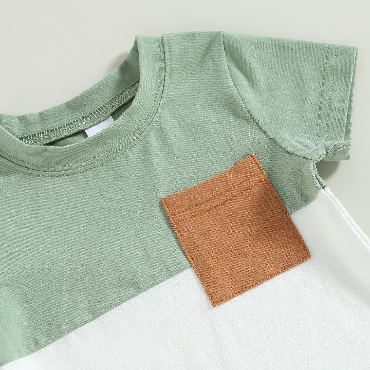 fhutpw Baby Toddler Boy Clothes Summer Outfits 6 12 18 24 Months Patchwork Short Sleeve T Shirt & Shorts Sets with Pockets
