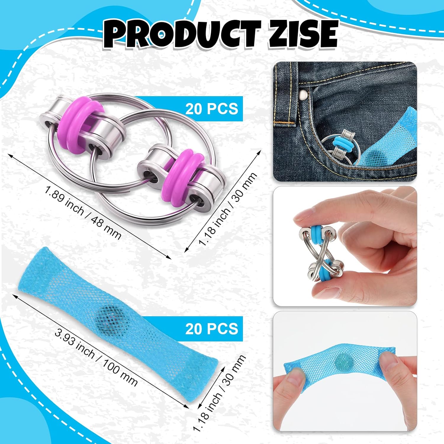 80 Pcs Fidget Toys Bike Chain Fidget Toy Flippy Fidget Toy Soothing Fidgets Stress Anxiety Relief for Teens Adults ADHD Autism Finger Toys, 5 Colors (40 Pcs)