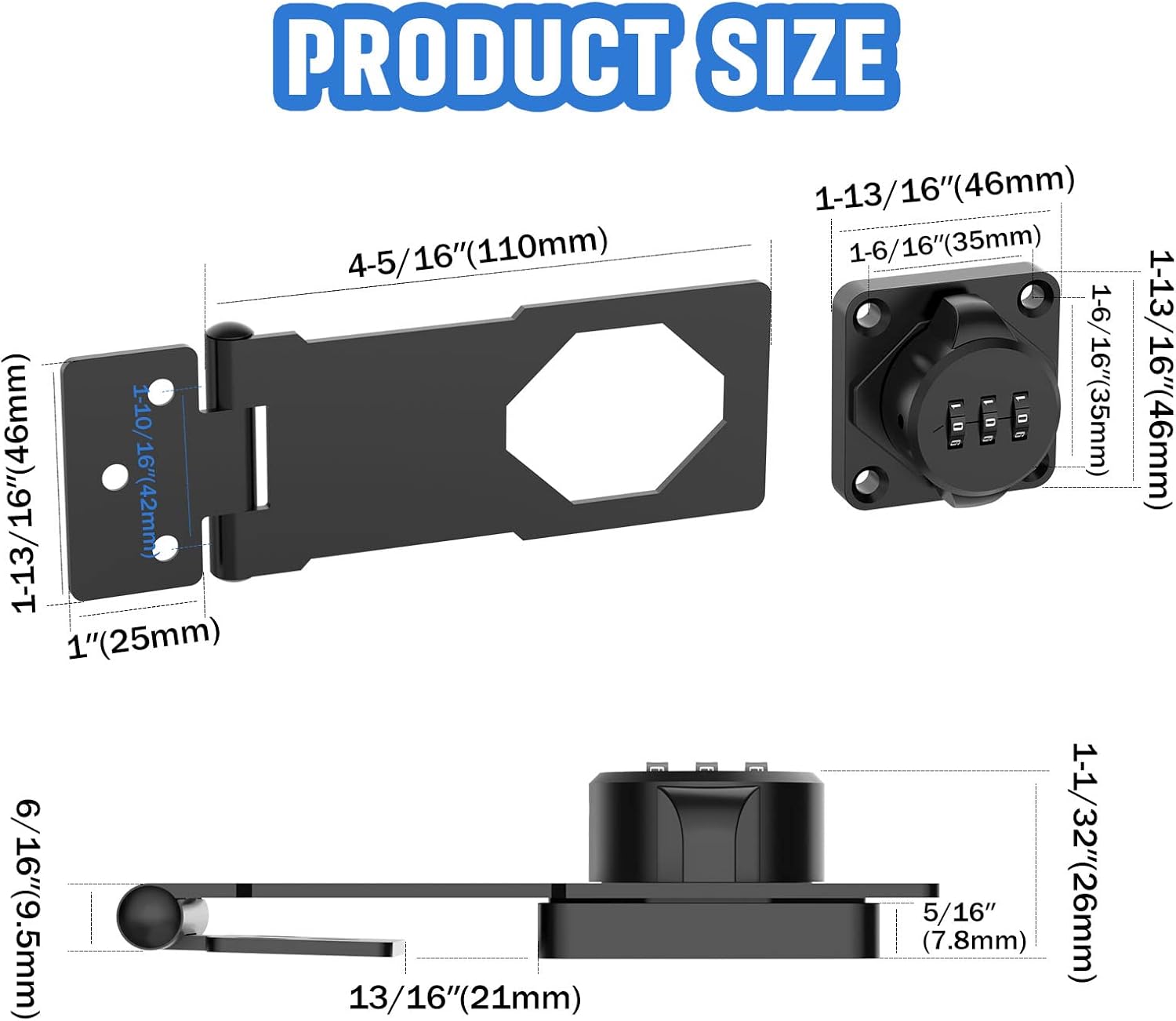 - 3- Digit Combination Lock: The keyless cabinet lock features 1000 unique combination options for significantly enhanced security. You can change any 3-digit password on a regular basis, providing efficient and flexible confidentiality for your personal belongings. No key is required to open this shed lock, solving your problem of forgetting keys