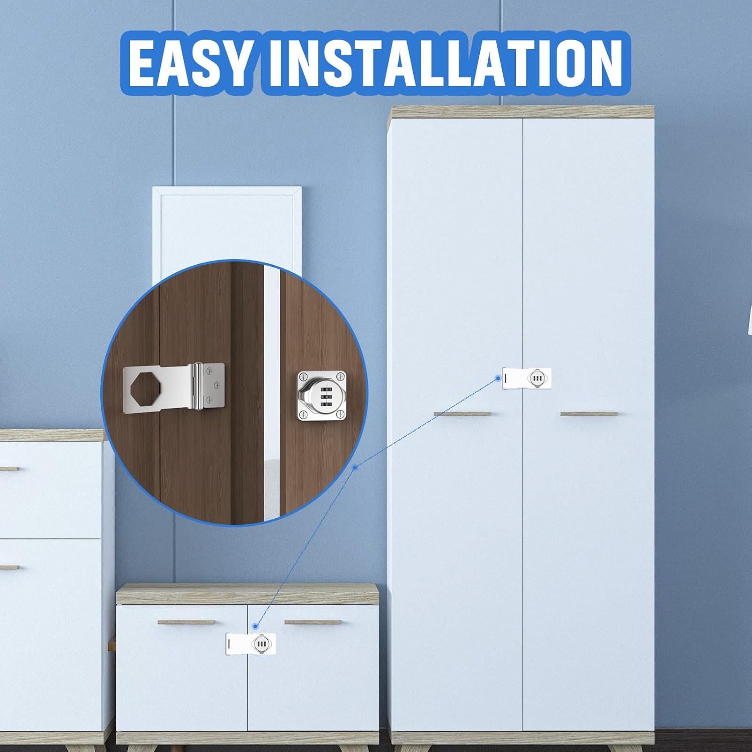 - Easy to Install: The door latches hardware is suitable for top, bottom, left and right installation at 90° or 180°. Simply mark the holes and locations before installation, then install the cabinet door lock on the door and fix it with the included screws (please refer to the illustration for detailed installation steps)