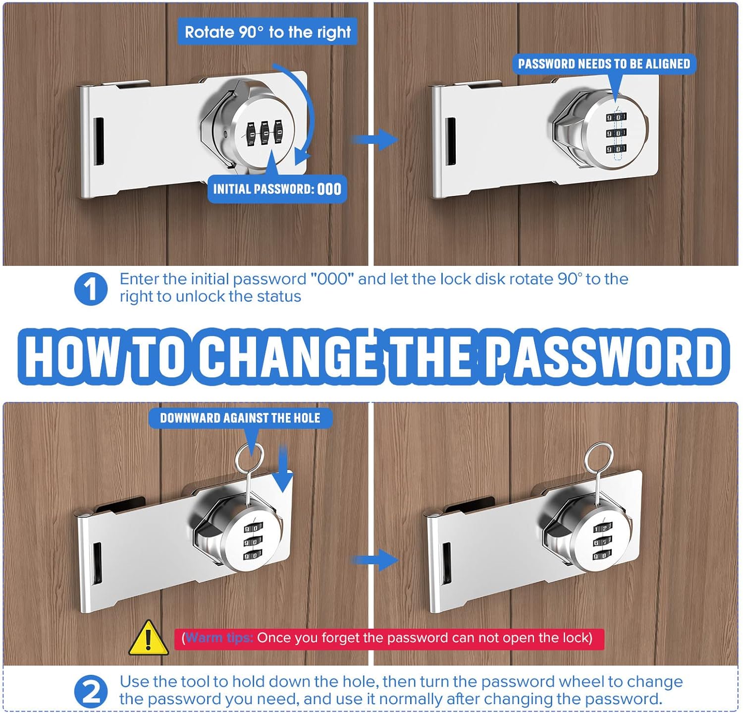 - 3- Digit Combination Lock: The keyless cabinet lock features 1000 unique combination options for significantly enhanced security. You can change any 3-digit password on a regular basis, providing efficient and flexible confidentiality for your personal belongings. No key is required to open this shed lock, solving your problem of forgetting keys