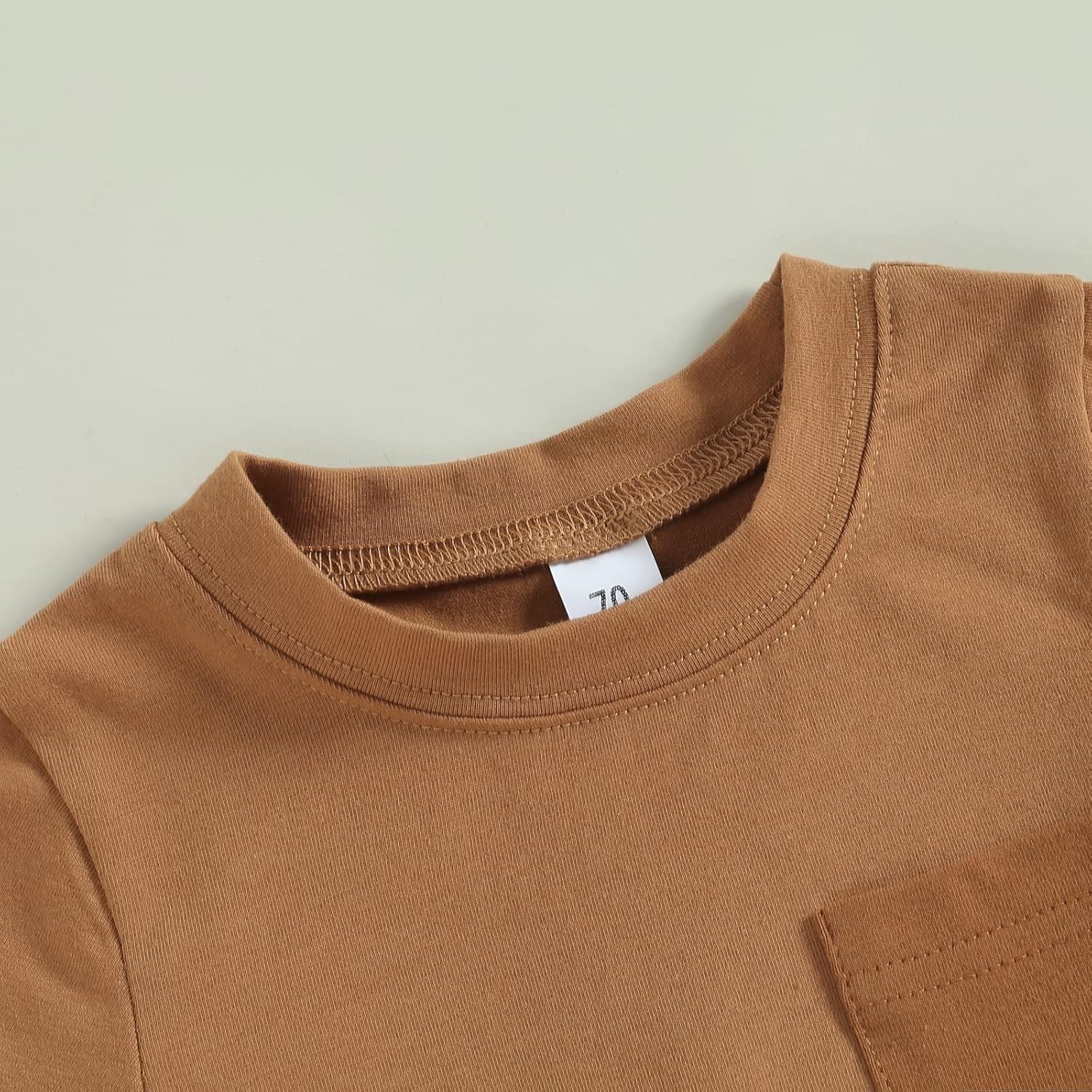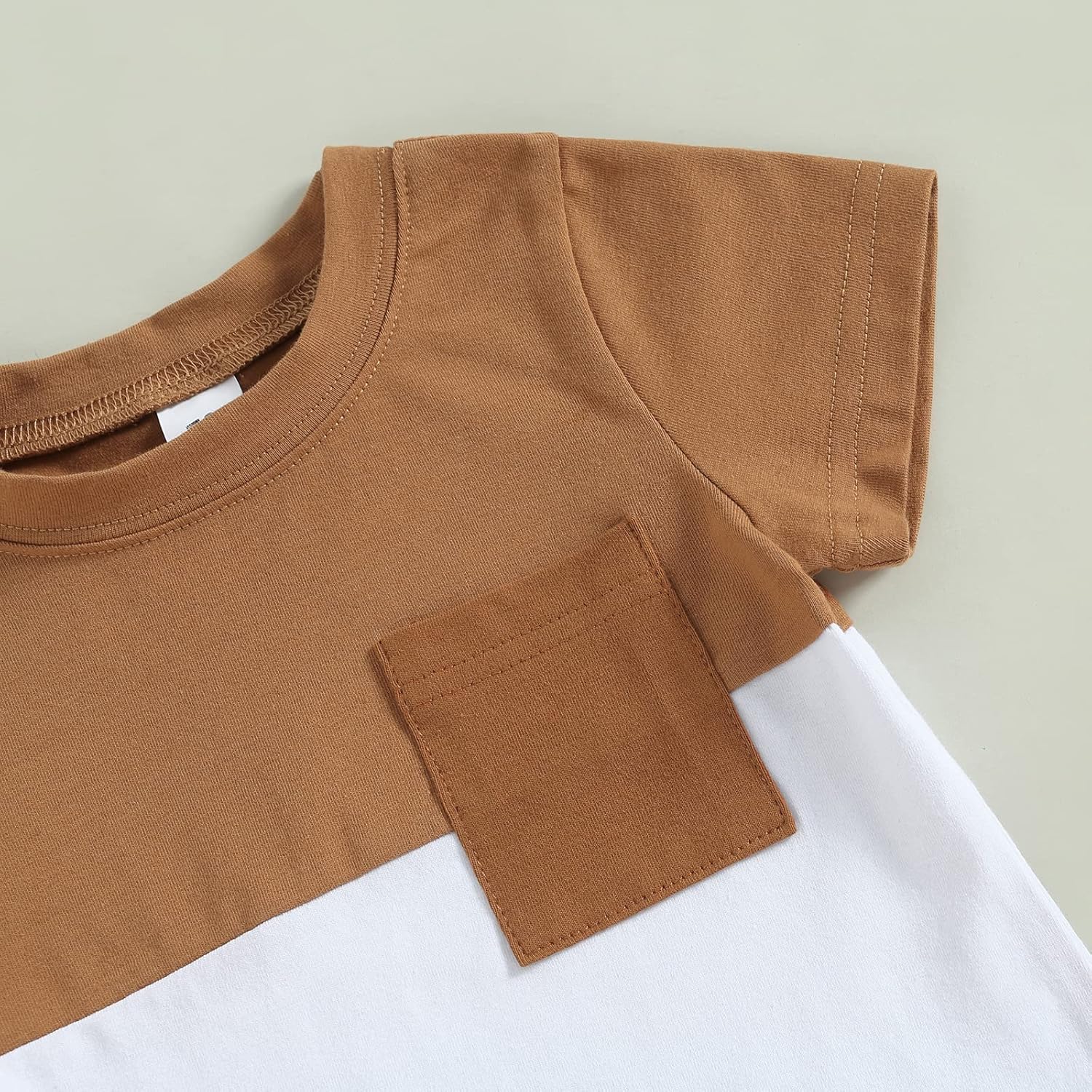 • Relax Crew Neck, One Pocket Front, Striped Pattern, Comfy Short Sleeve T Shirts Tee Tops, Elastic Waist with Drawstring Shorts, Side Pockets, Comfy and Cute Newborn Baby Boys Summer Outfits Clothes