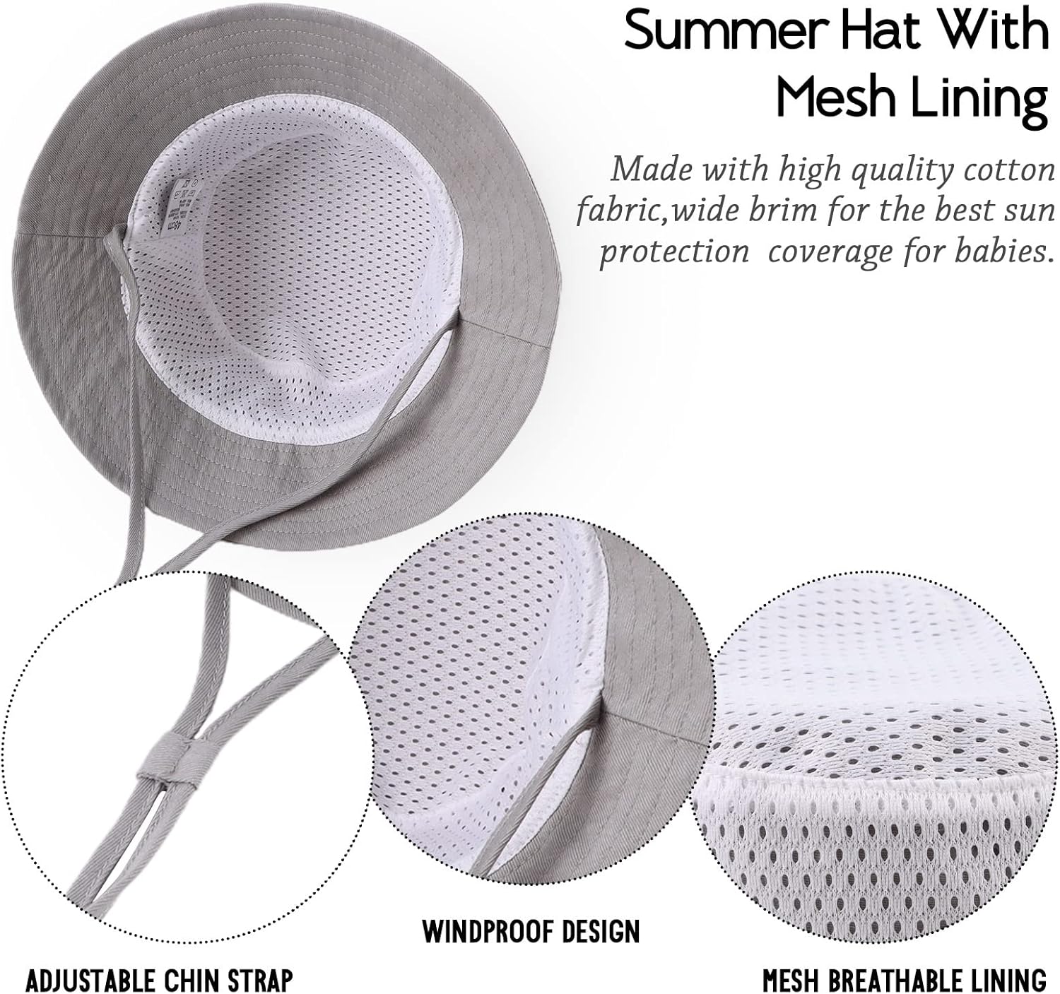 • MATERIAL: The cute baby sun hat made of 100% cotton the exterior and polyester mesh lining . The tailored design ensures that it is breathable and comfortable, and also providing an ideal environment for our cherished babies to grow. It is recommended to use a mild, neutral detergent and wash it gently with cold water, preferably by hand.