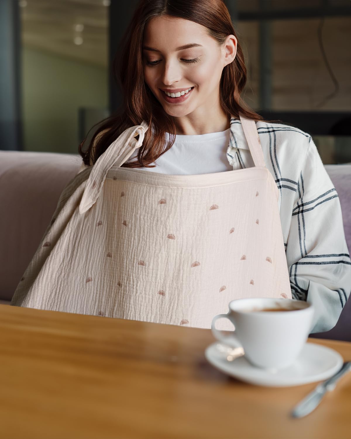 - Premium Muslin Cotton: The nursing cover is made of muslin cotton, which is soft, lightweight and breathable. It keeps cool and cozy for both mothers and babies, even in hot summer. Plus, the muslin material stays soft even after washing