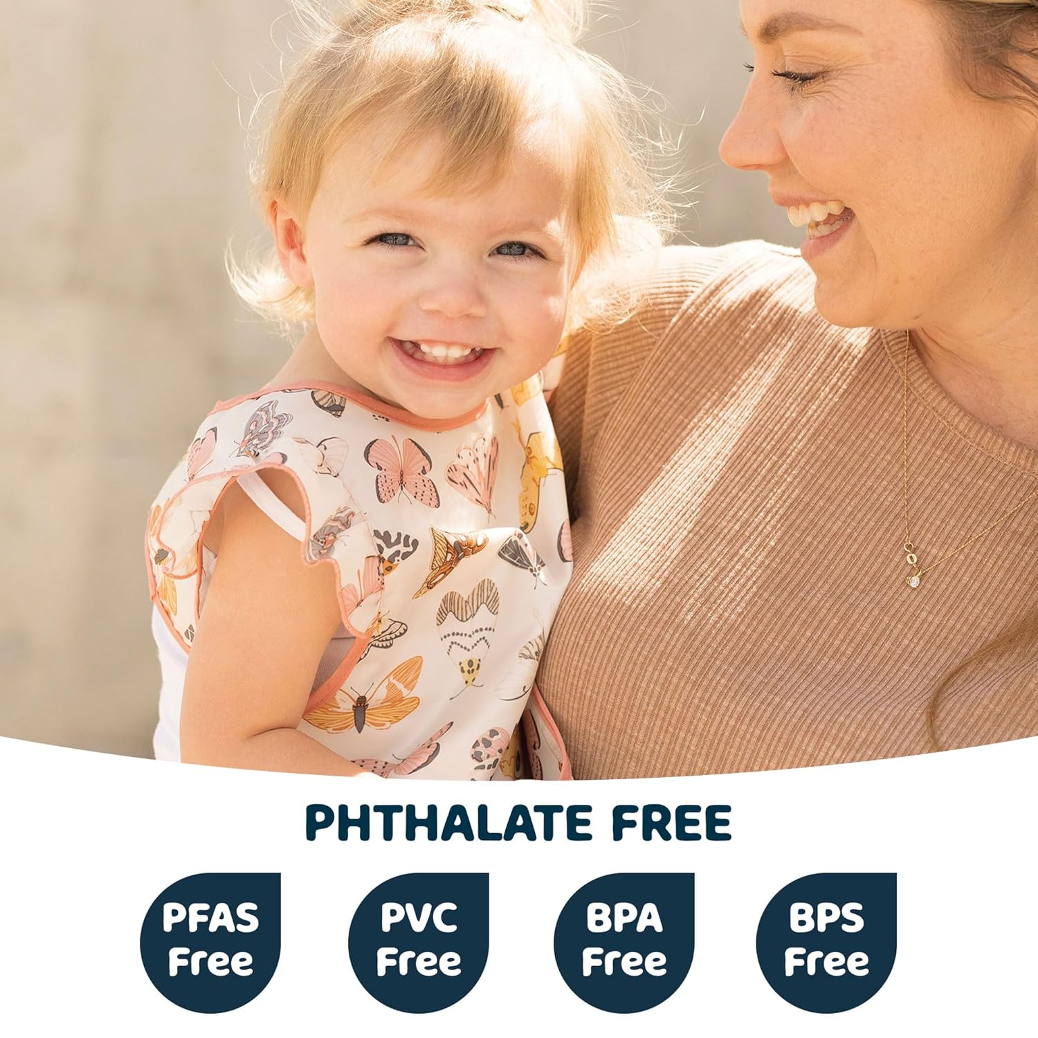 Tiny Twinkle Mess Proof Baby Bib - Waterproof & Lightweight Baby-Led Weaning Apron | 100% Recycled Polyester, Easy Clean & Machine Washable (Flutter, Small 6-24 Months)
