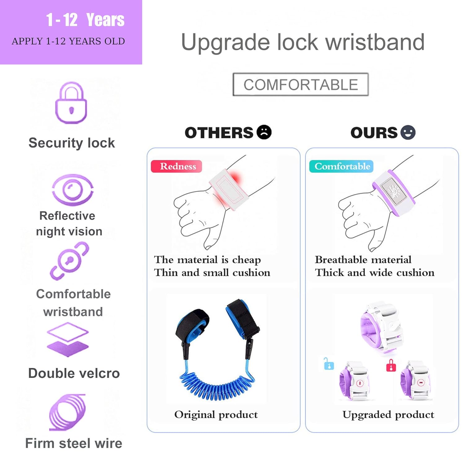 Toddler Harness Walking Leash- Child Anti Lost Wrist Link - Child Safety Harness - Upgrade with Reflective(6.5ft) - for Boys and Girls,Not Easy to Open Without Key (Purple)