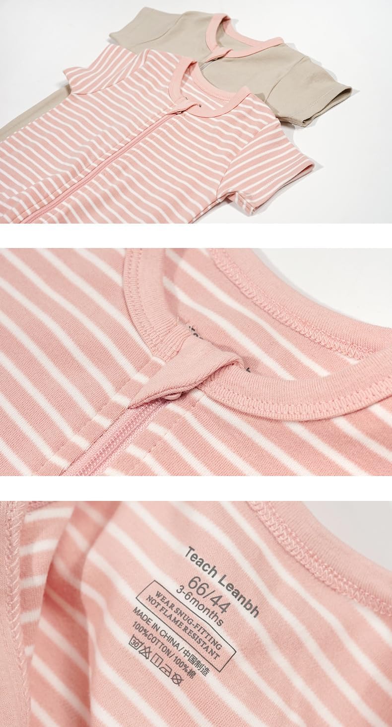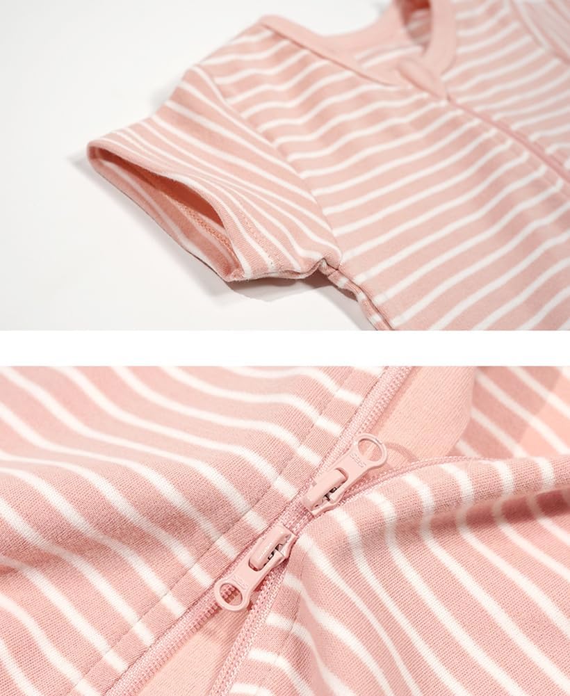 Teach Leanbh Toddler Baby Boys Girls 2-Pack Pajamas Cotton 2 Way Zipper Short Sleeve Footless Romper Sleep and Play