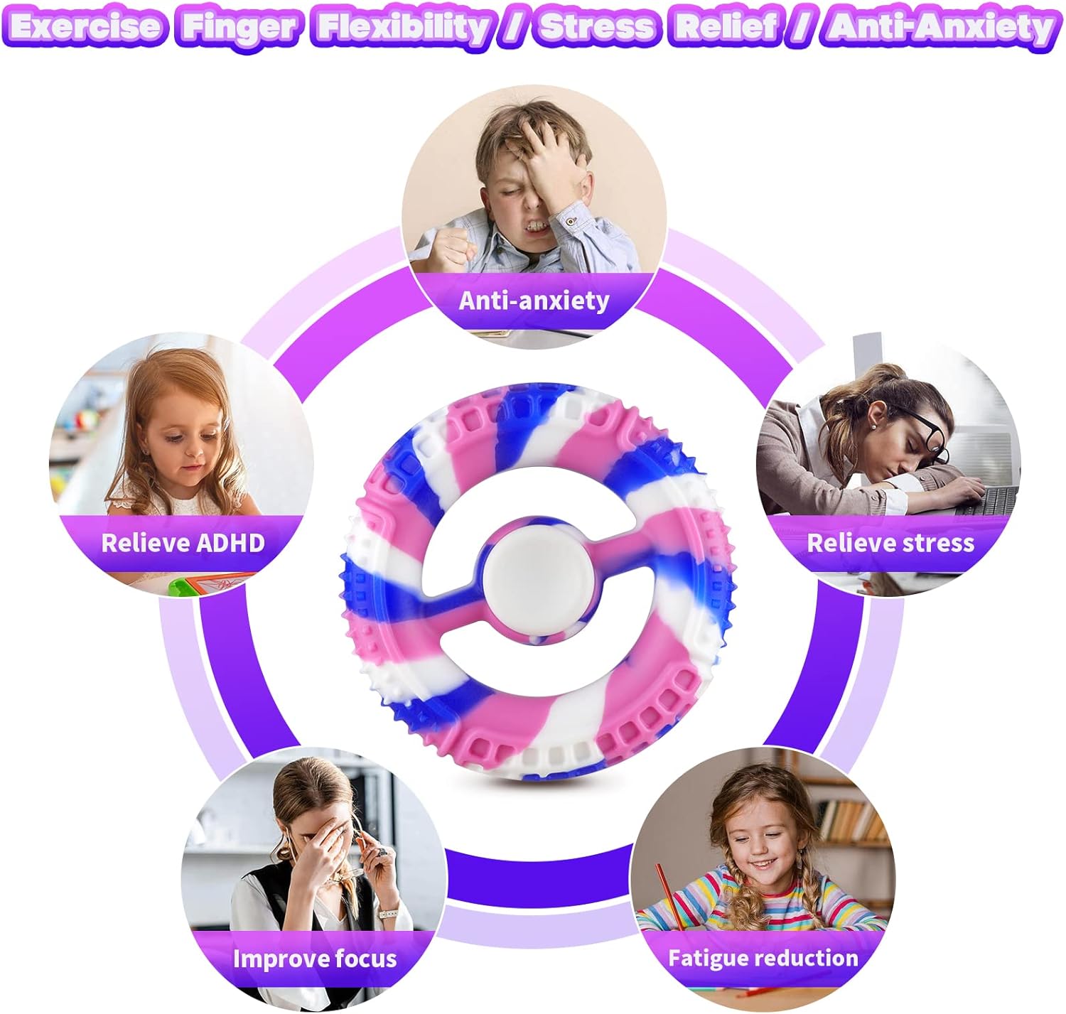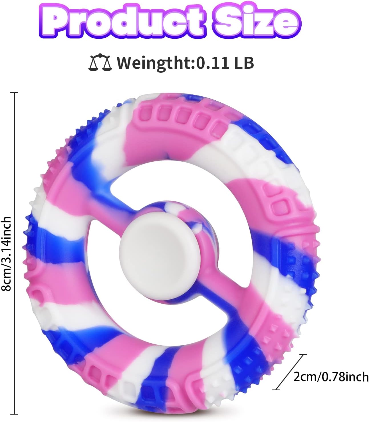 2Pcs Fidget Spinners,Squeeze Round Grip Ring Toy,Multi-Color Silicone Stress Relief Decompression Fingertip Spinner Gift for Kids, Sensory Bath Toys for 3-14 Year Old