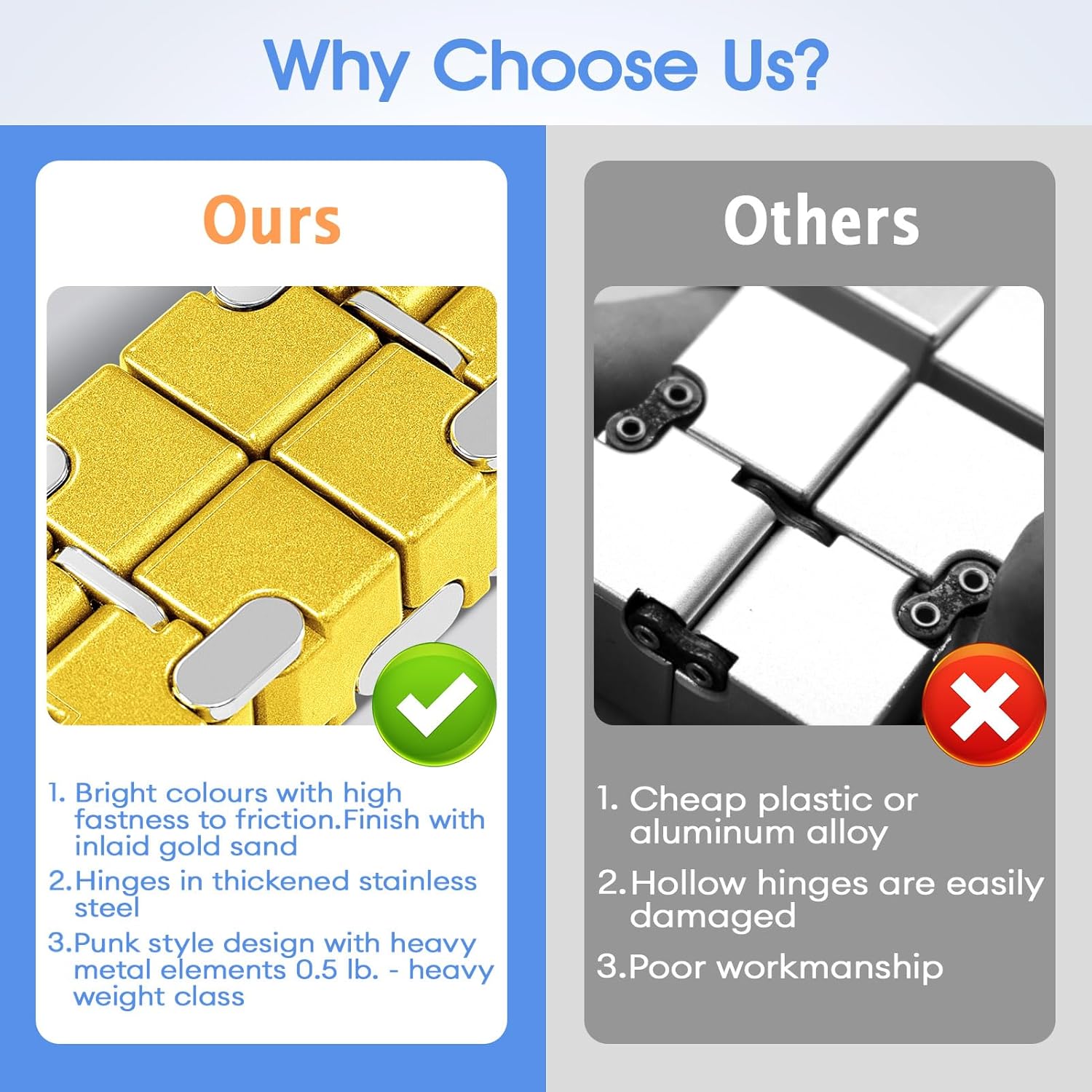 - 【Upgraded Zinc Alloy Infinity Cube】Our Infinity Cube is crafted from premium zinc alloy, which boasts higher color fastness, wear-resistance, and corrosion-resistance compared to traditional aluminum metal. This ensures superior durability and longevity.