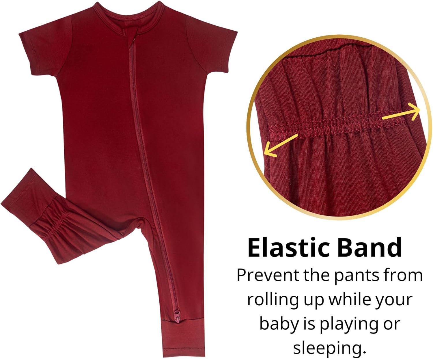 GUISBY Rayon Made from Bamboo Baby Pajamas, Summer Short Sleeve Footless Rompers, 2 Way Zipper Sleeper
