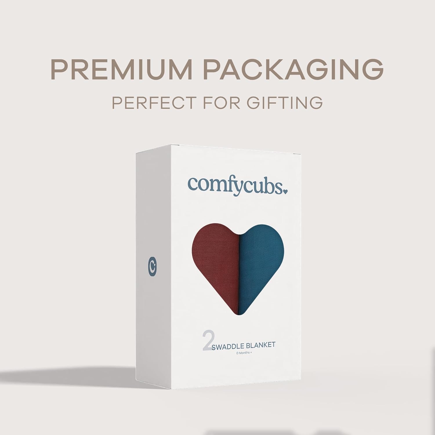 Comfy Cubs Muslin Swaddle Blankets Pack of 2 - 47 x 47 Inch Soft Cotton Baby Blanket Set, Large Multipurpose Wraps for Newborns - Self-Soothing Swaddles for Newborns - Wine & Neptune