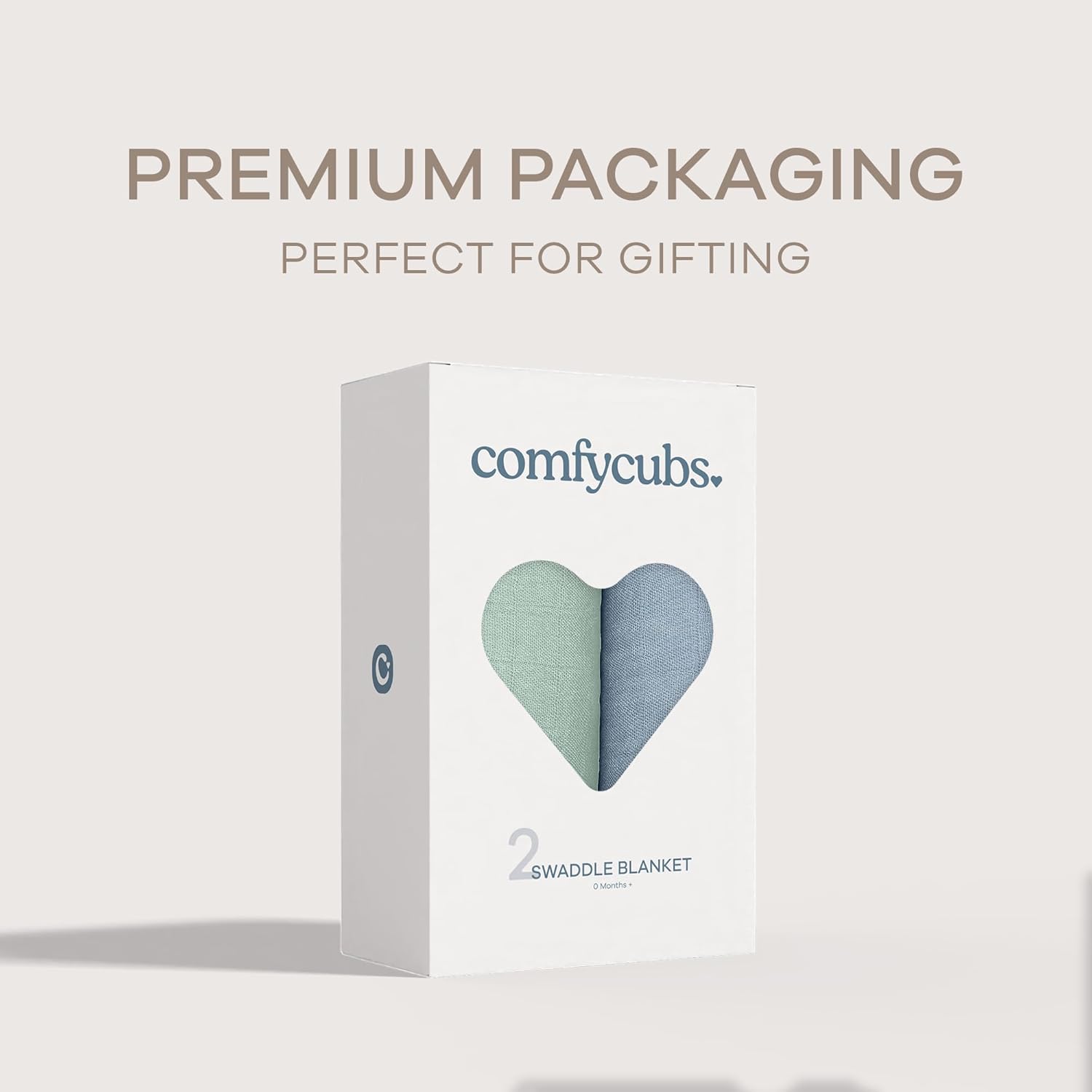 Comfy Cubs Muslin Swaddle Blankets Pack of 2 - 47 x 47 Inch Soft Cotton Baby Blanket Set, Large Multipurpose Wraps for Newborns - Self-Soothing Swaddles for Newborns - Pacific Blue & Fern