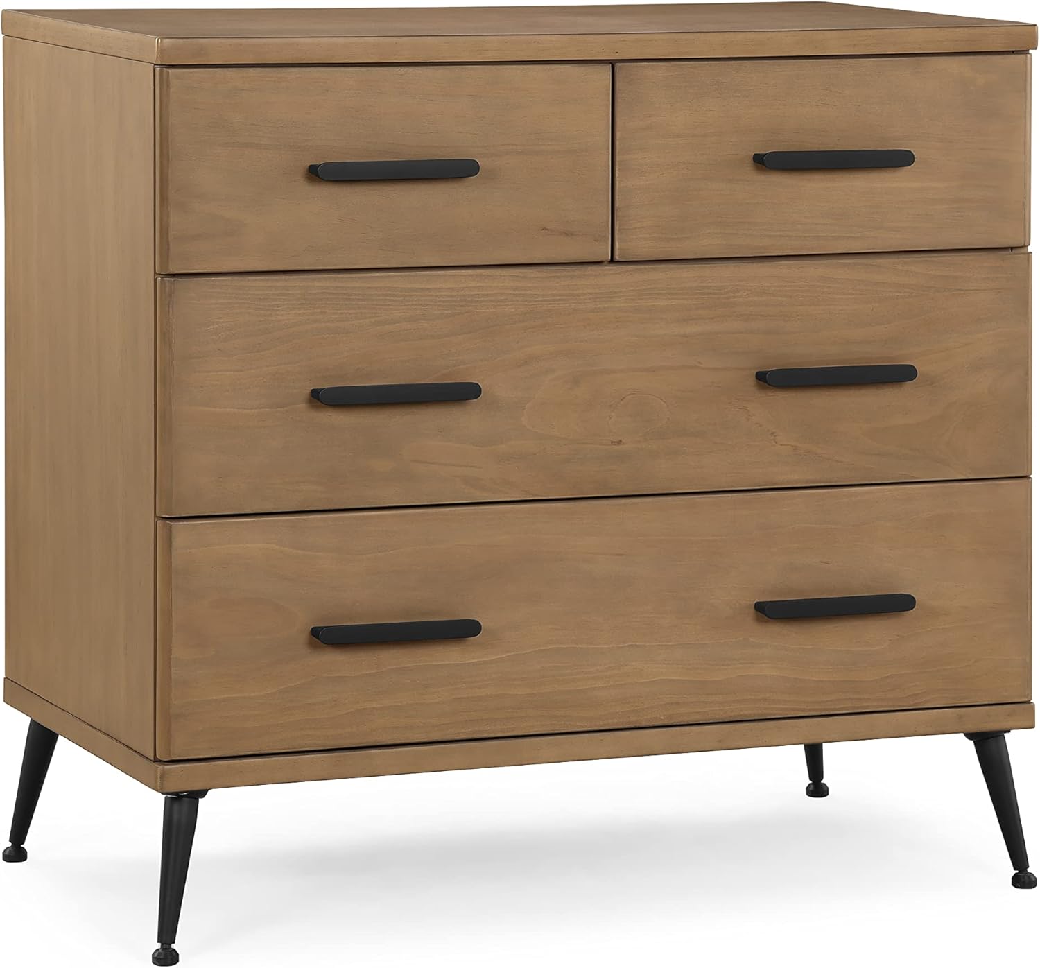 - Dresser Features: Crafted of sturdy, sustainable materials like New Zealand pine to give it plenty of longevity. For your child’s safety, this dresser is outfitted with an interlocking drawer system that limits the number of drawers that can be opened at one time. For additional security, we strongly recommend that all dressers in your home be anchored; dresser includes a wall anchor.