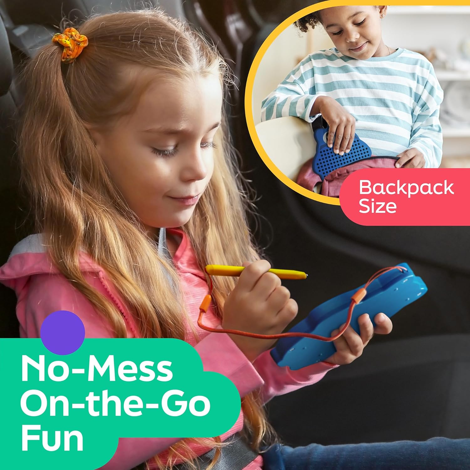 - A No-Mess Toy for Kids: Make long drives bearable and keep your youngsters entertained without getting messy! Our magnetic board drawing pad is all you need to occupy their hands, minds, and eyes for hours!